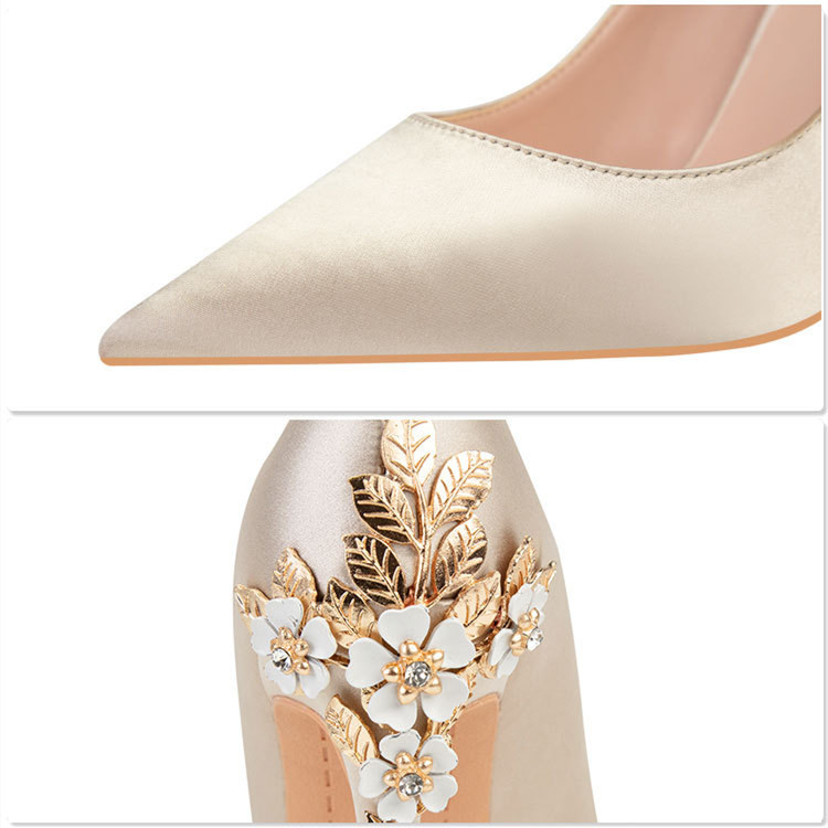 Women's Fashion Fashion Flower Stiletto High Heel Pointed Toe Satin Shoes