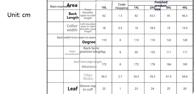 Sizes: 1XL, 2XL, 3XL, 4XL