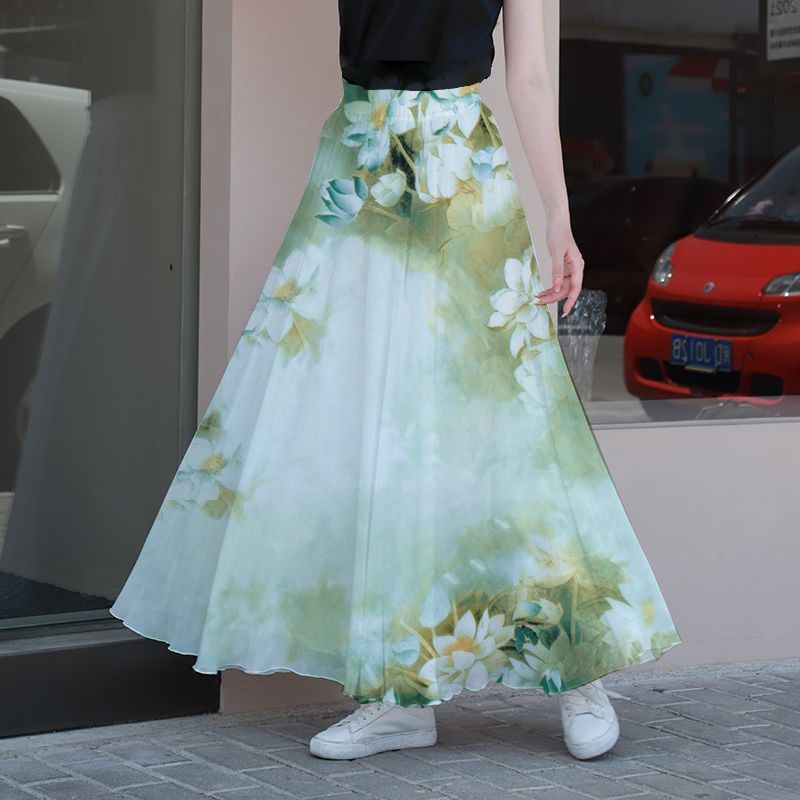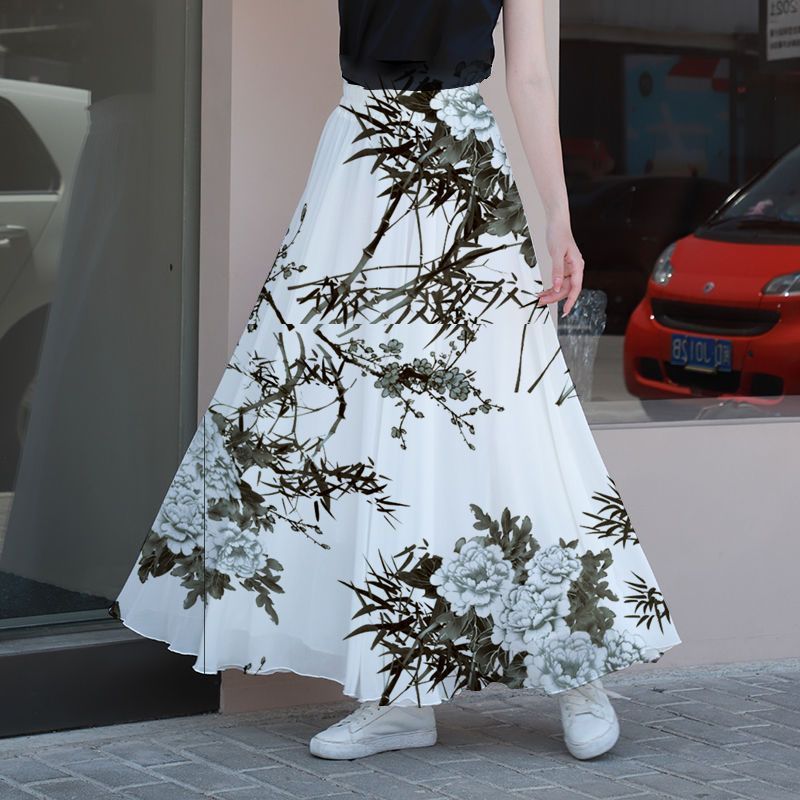 Color: Green Lily [Skirt Length 90cm], Polka Dot Skirt [Skirt Length 90cm], Ink Peony [Skirt Length 90cm], Small Yellow Flower [Skirt Length 90cm], Bamboo Leaf Skirt [Skirt Length 90cm], Tulip [Skirt Length 90cm], Ink Bamboo [Skirt Length 90cm], Elegant Grey Bottom Flower [Skirt Length 90cm], Blue Bottom Rose [Skirt Length 90cm], Beige Peony [Skirt Length 90cm]