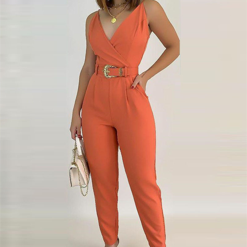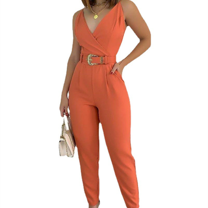 Women's Fashion Hundred V-Neck Tie Slimming Jumpsuit