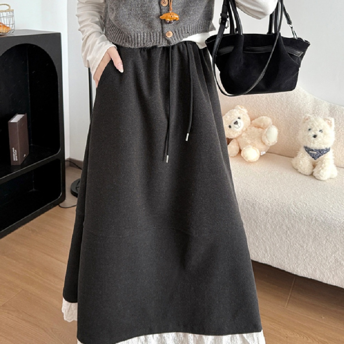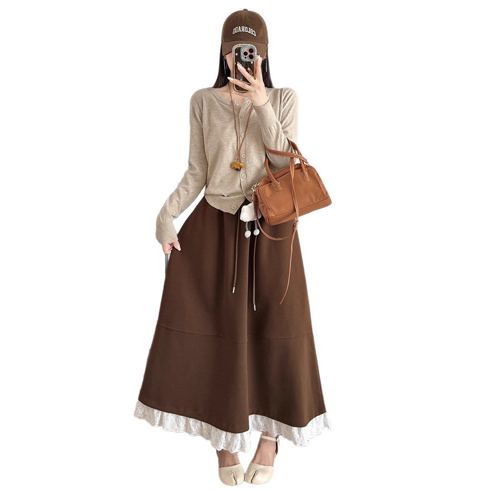 Women's Fashion Lace Trim Flare Skirt