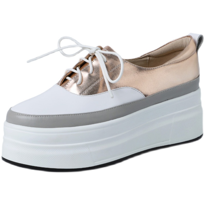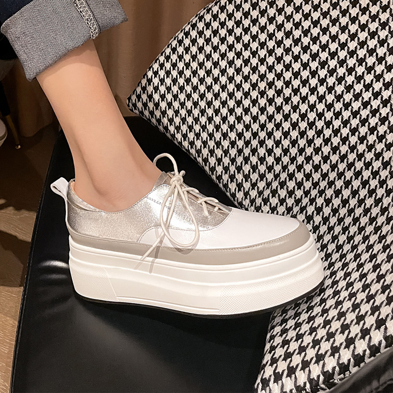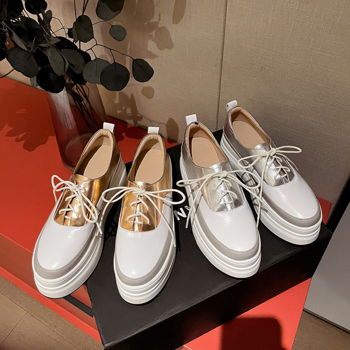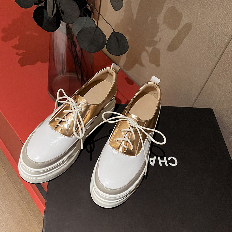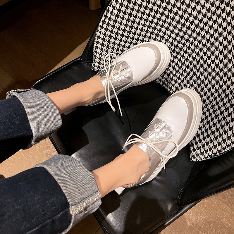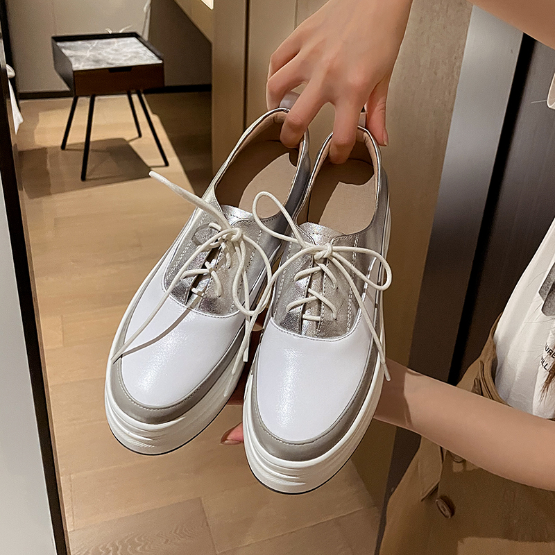 Women's Fashion Leather Color Matching Thick Sole Shoes