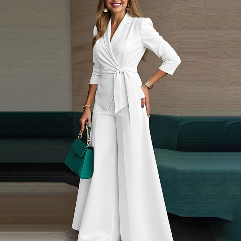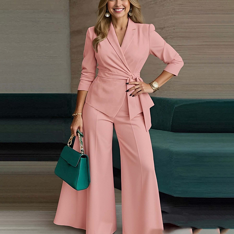 Womens Fashion Long-Sleeve Casual Minimalist Pants With Lace-Up Top Two-Piece Set