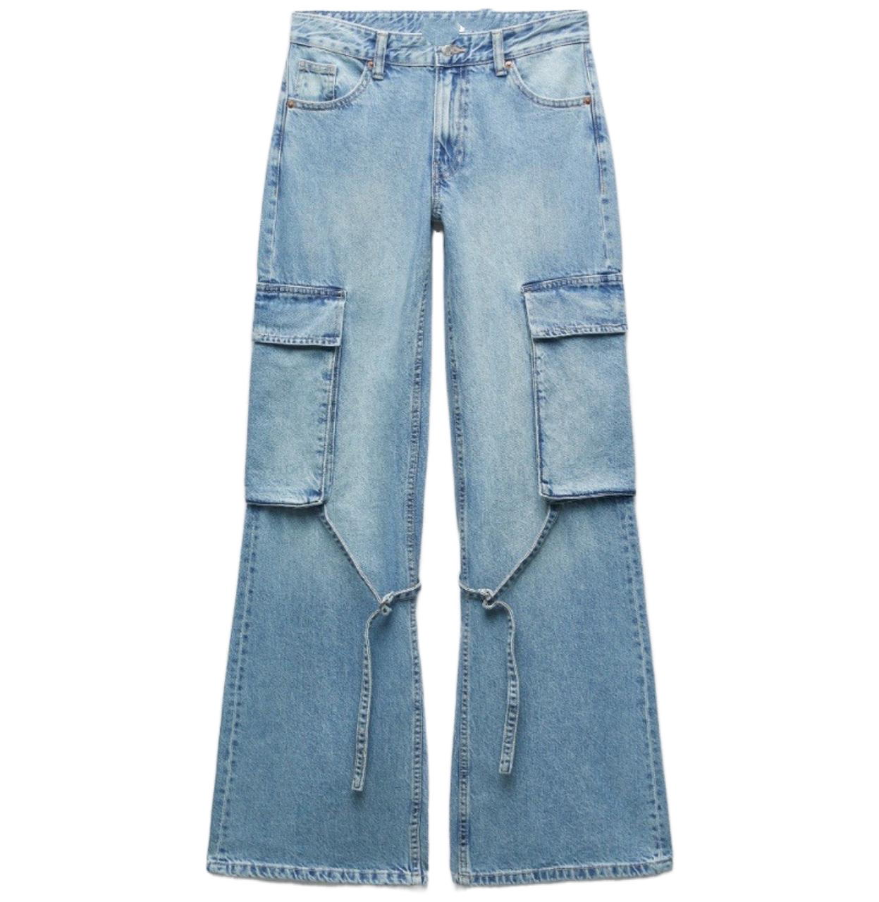 Women's Fashion Loose Strap Accessories Mid Waist Cargo Jeans