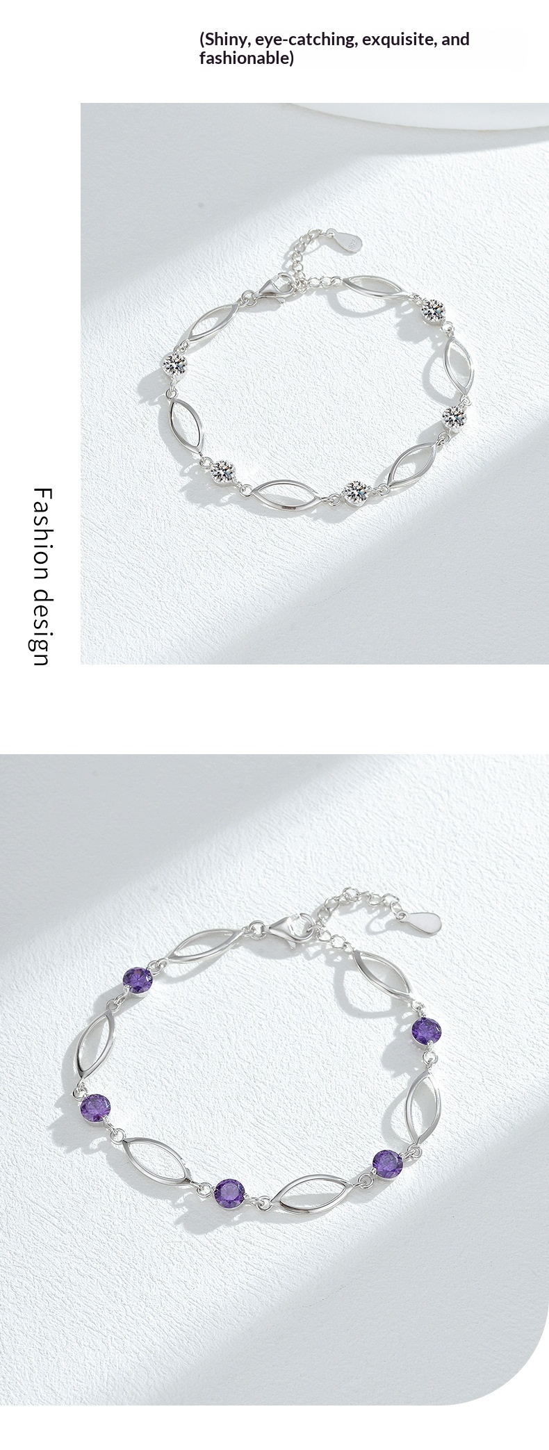 Color: White gold-white zircon, white gold-purple zircon