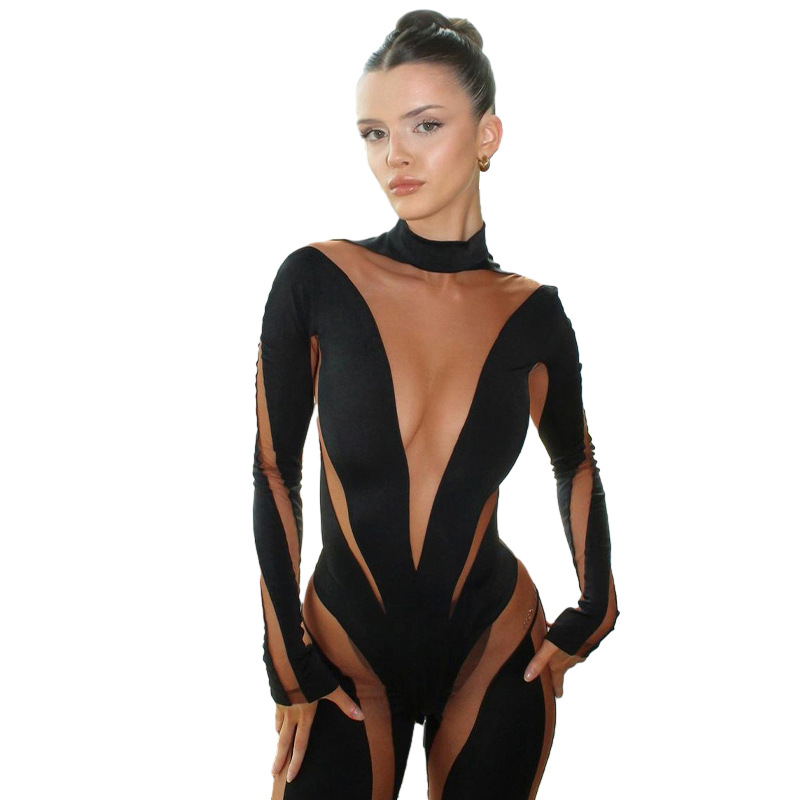 Women's Fashion Mesh Patchwork High Waist Jumpsuit