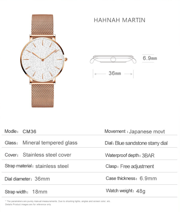 Dimensions: Thickness: 6.9mm Dial Diameter: 36mm