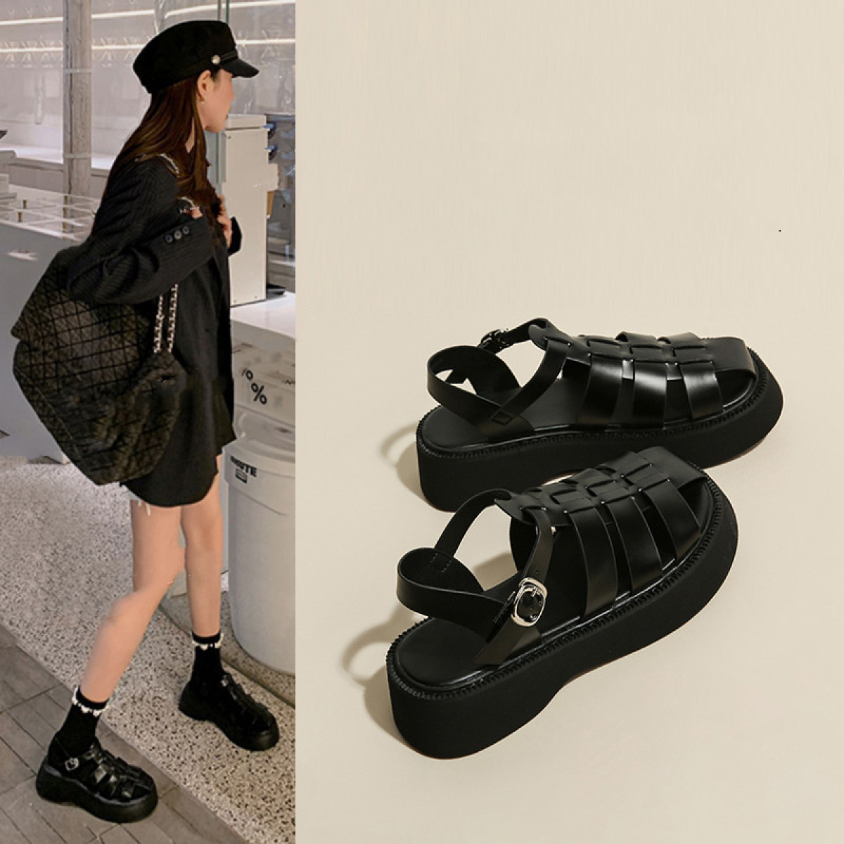 Popular elements: buckle muffin heel waterproof platform Roman style