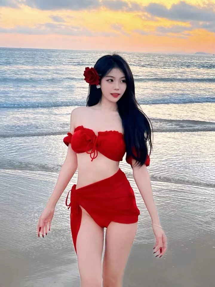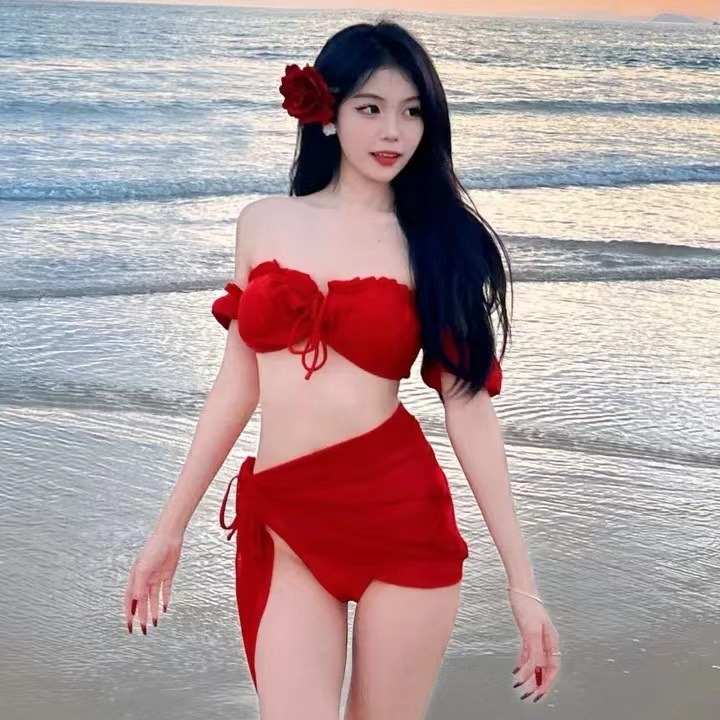Color: red puff sleeve skirt