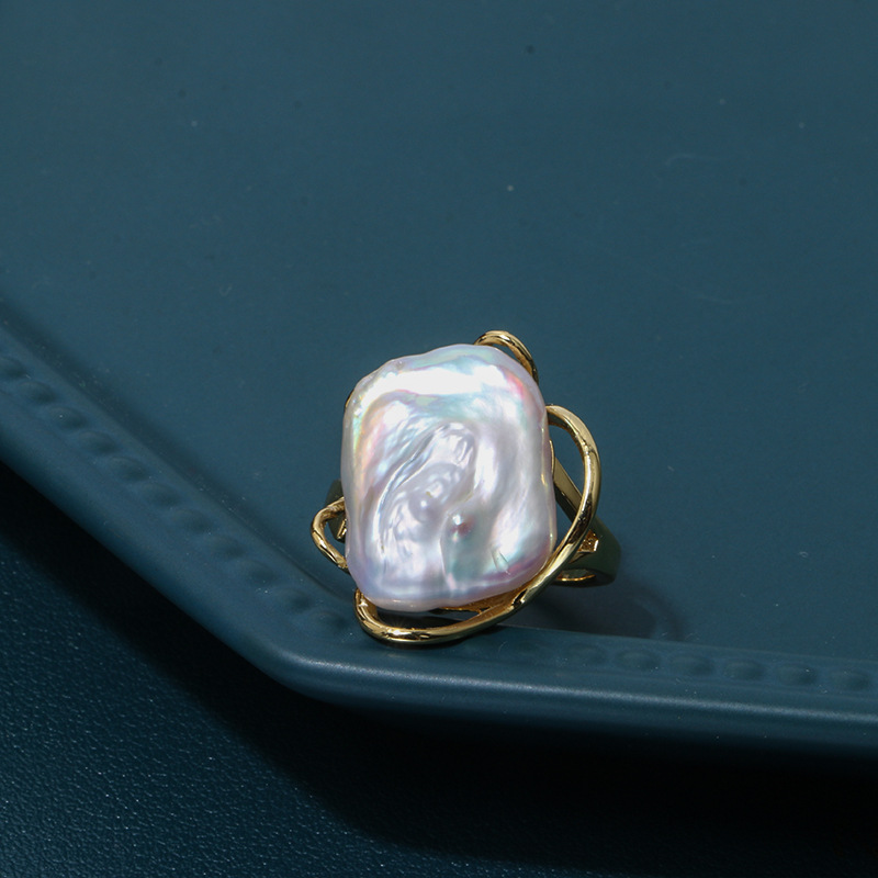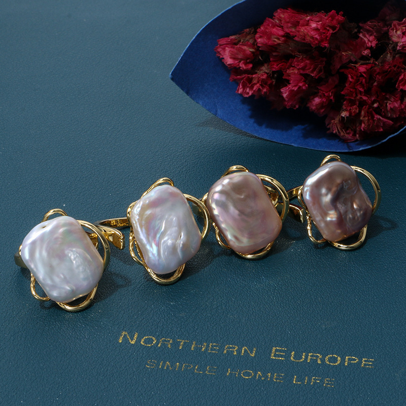 Product information:Type: Ring Color: purple, gold Size: adjustable opening Style: Women's Material: Pearl Shape: Geometry