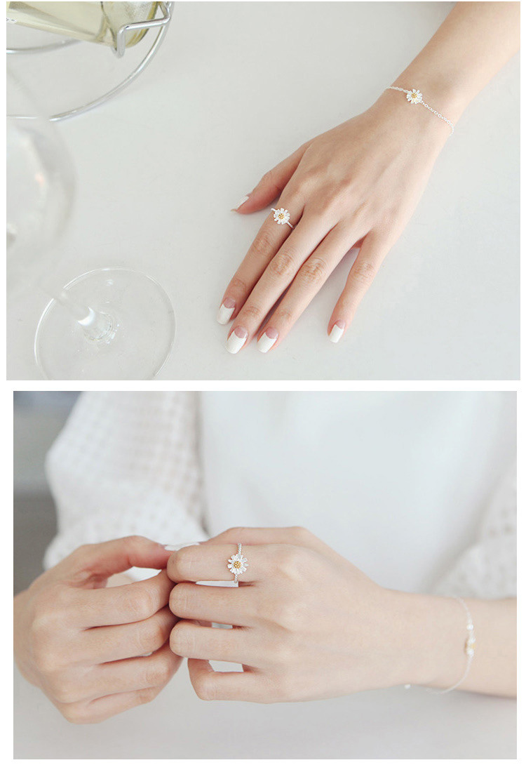 Product information:Type: Ring Treatment Process: Electroplating Material: Silver Shape: Flower Size: adjustable opening