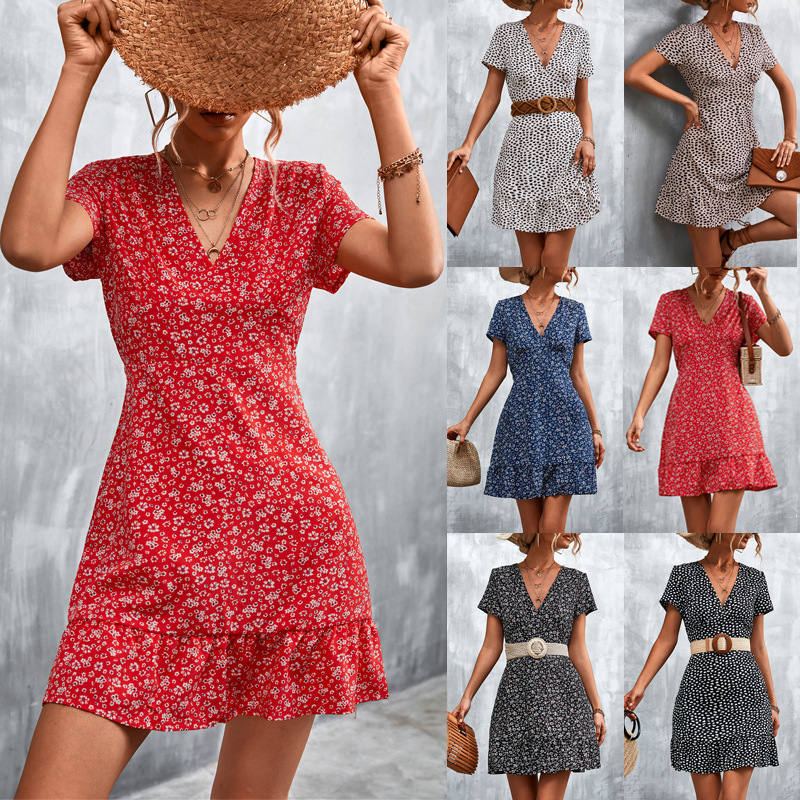 Color: black dots, black flowers, white dots, apricot dots, red flowers, blue flowers