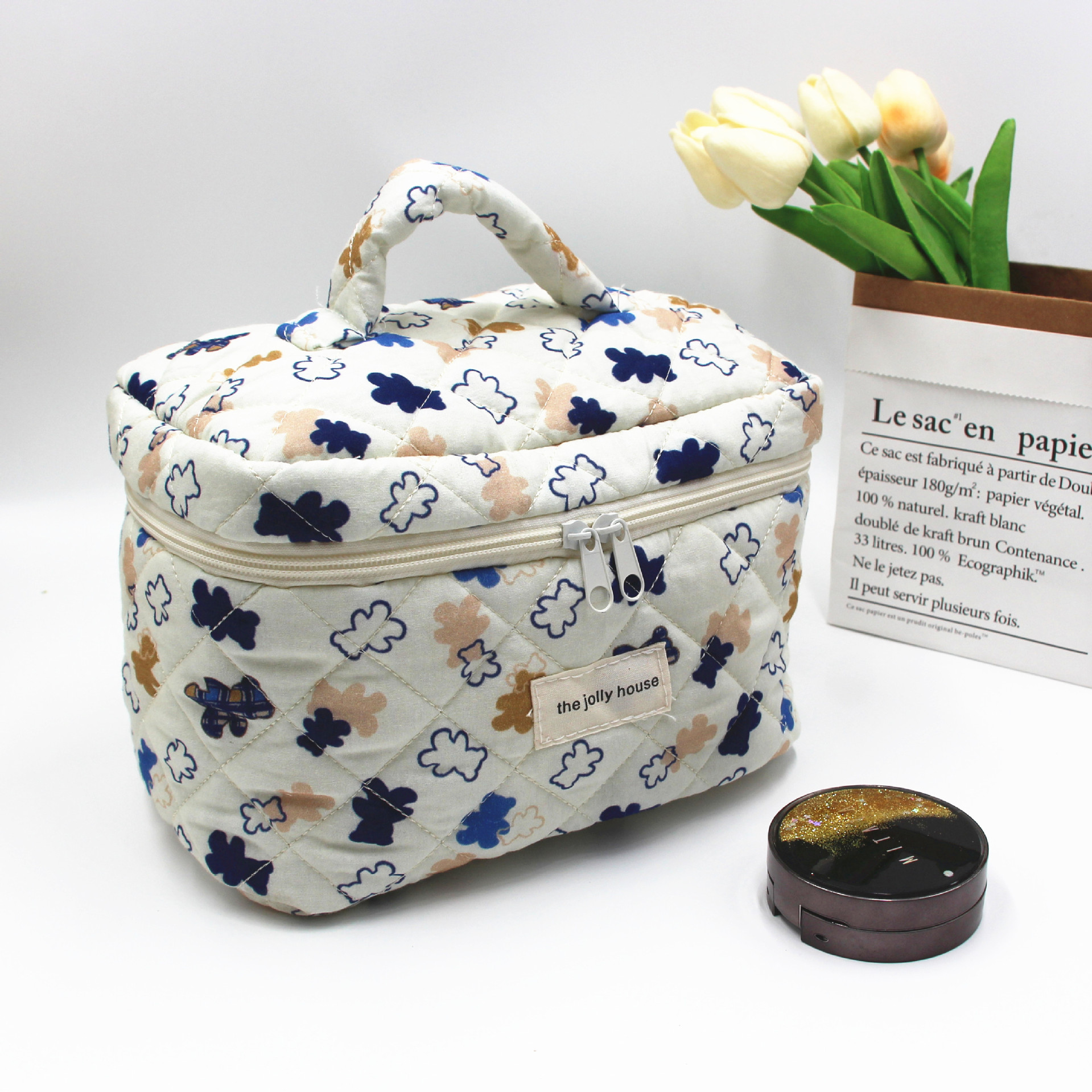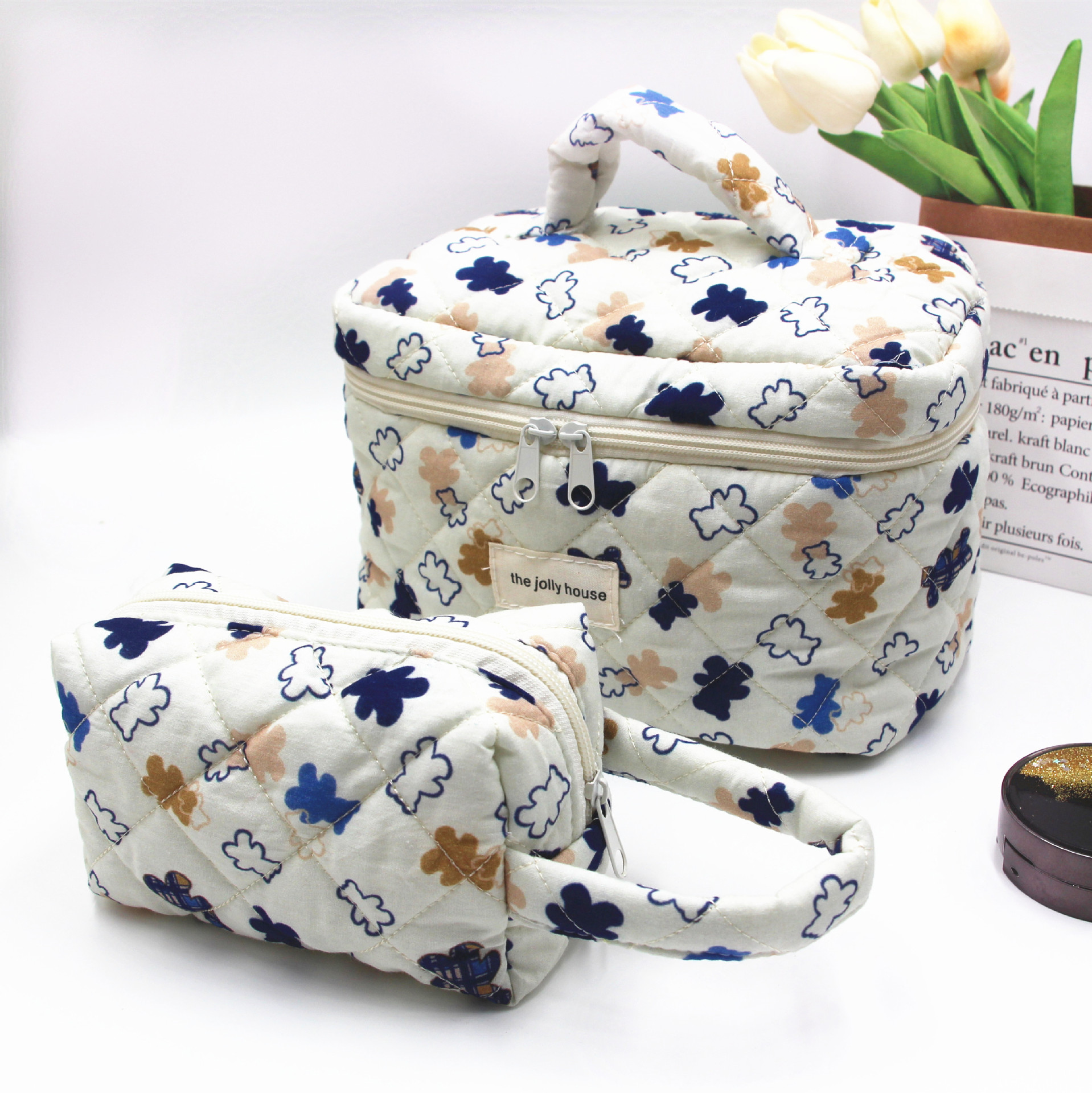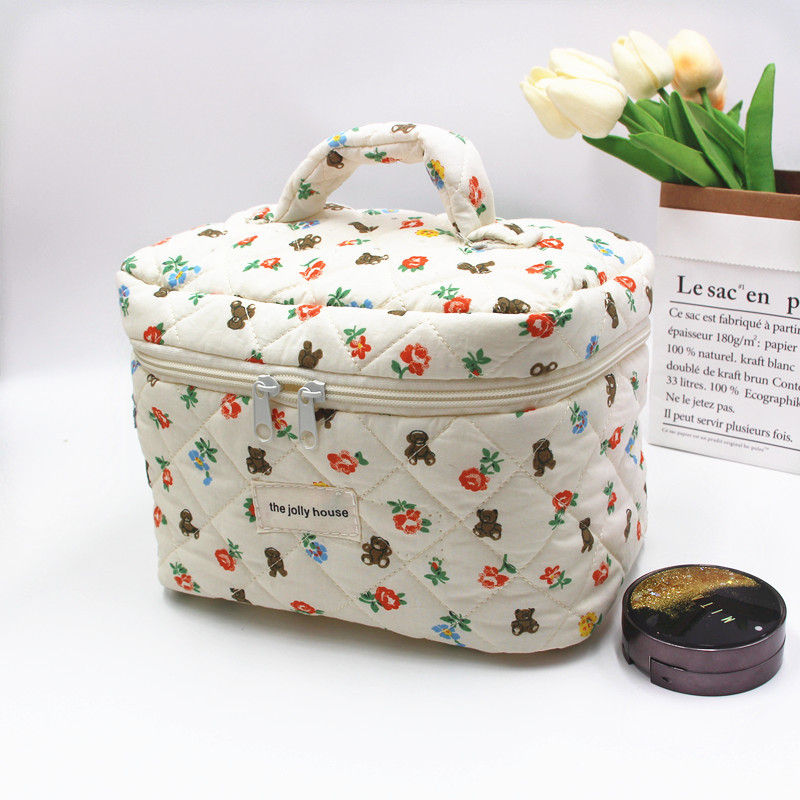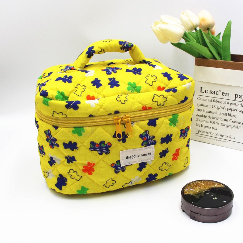 Color: bear white bottom handbag, bear yellow bottom handbag, flower Bear handbag, bear white bottom cosmetic bag, bear yellow bottom cosmetic bag, flower bear cosmetic bag