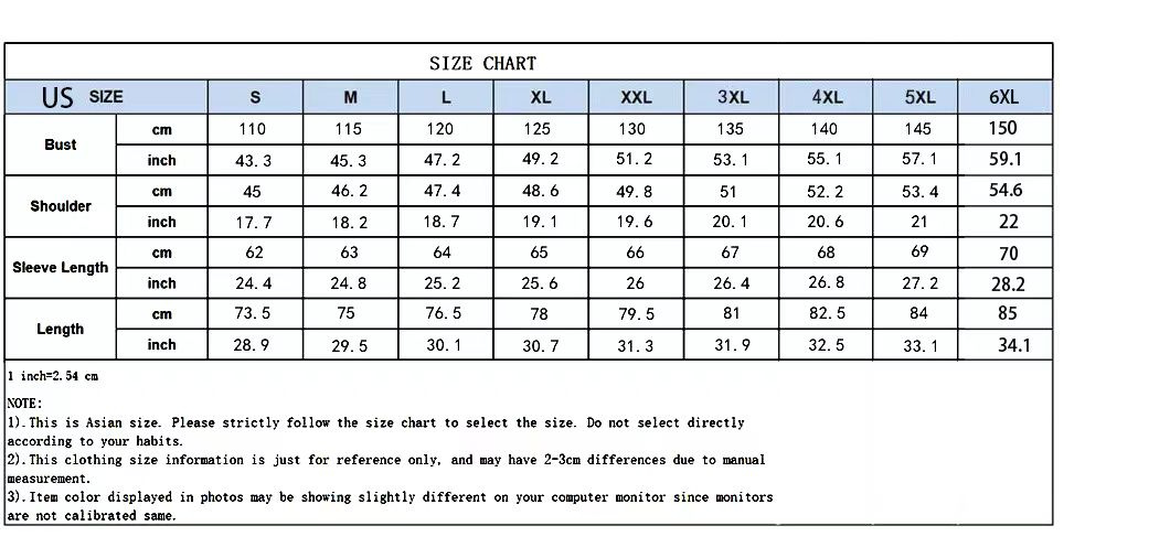 Sizes: XS, S, M, L, XL, XXL, XXXL, XXXXL