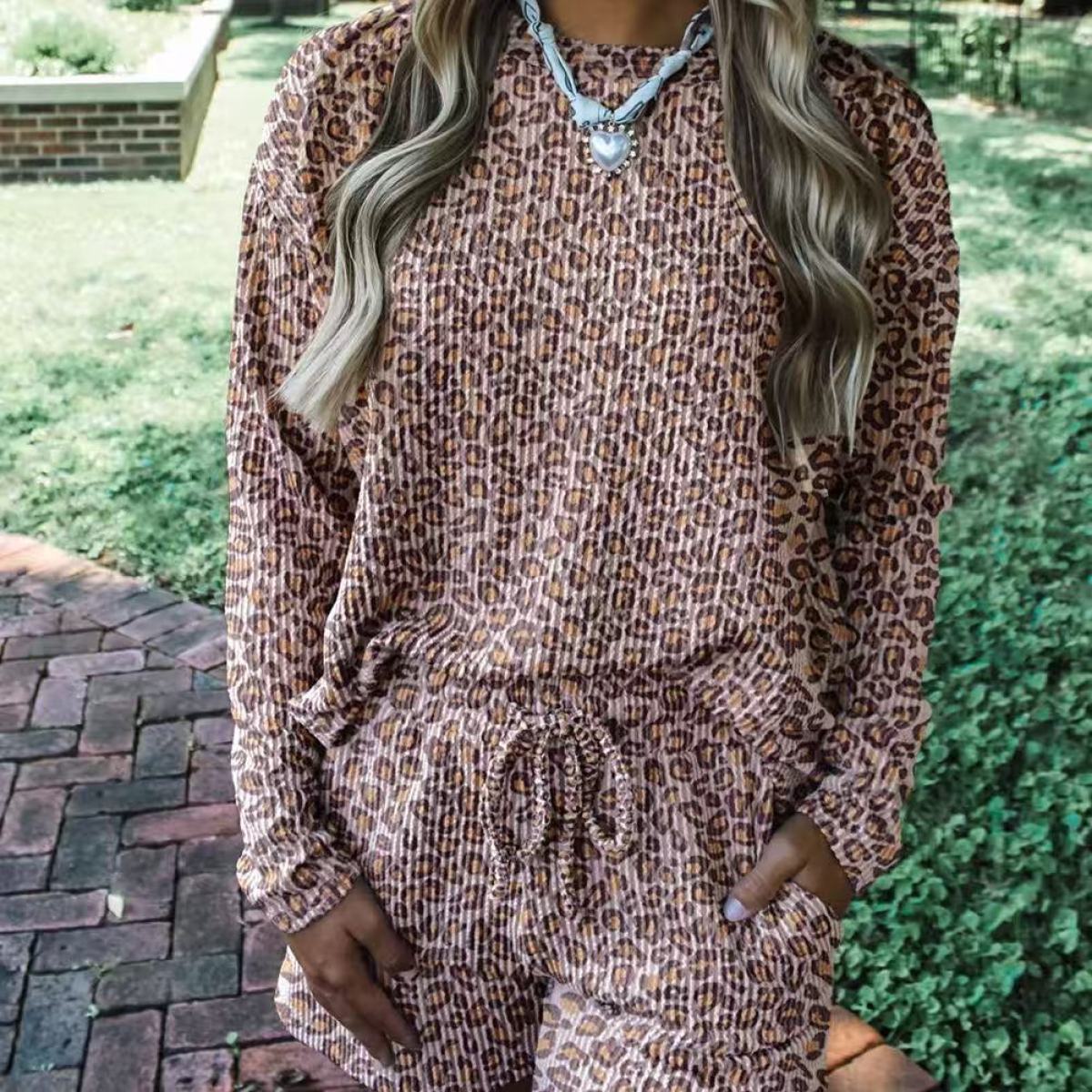 Women's Fashion Pullover Rib Long Sleeve Shorts Suit