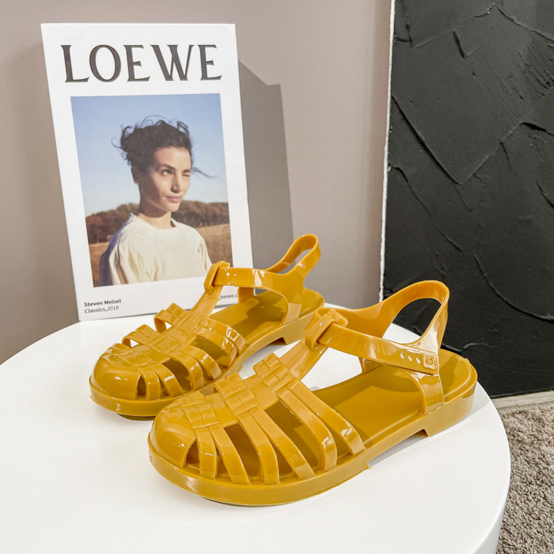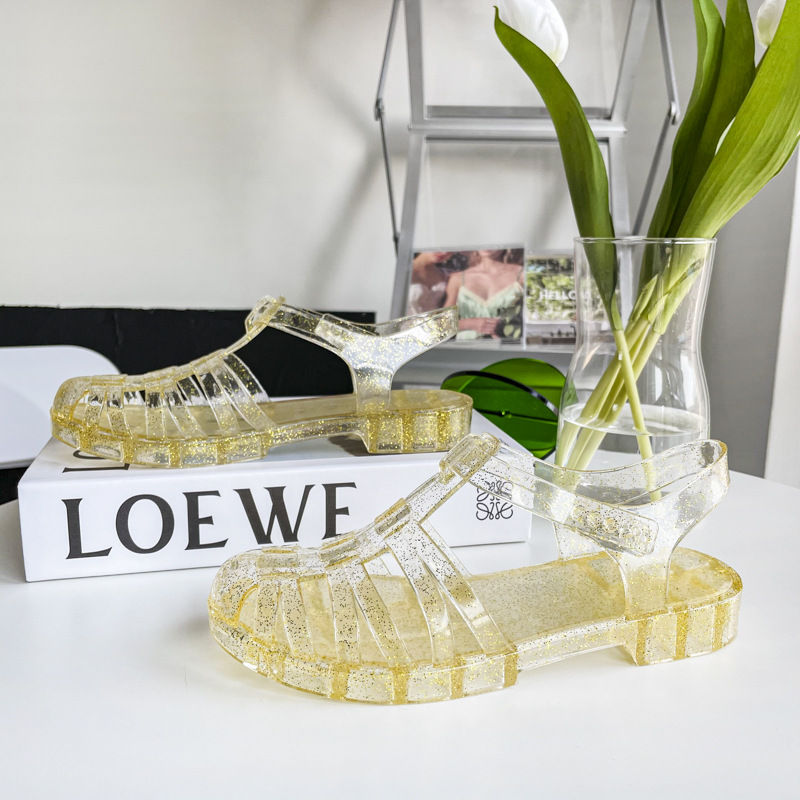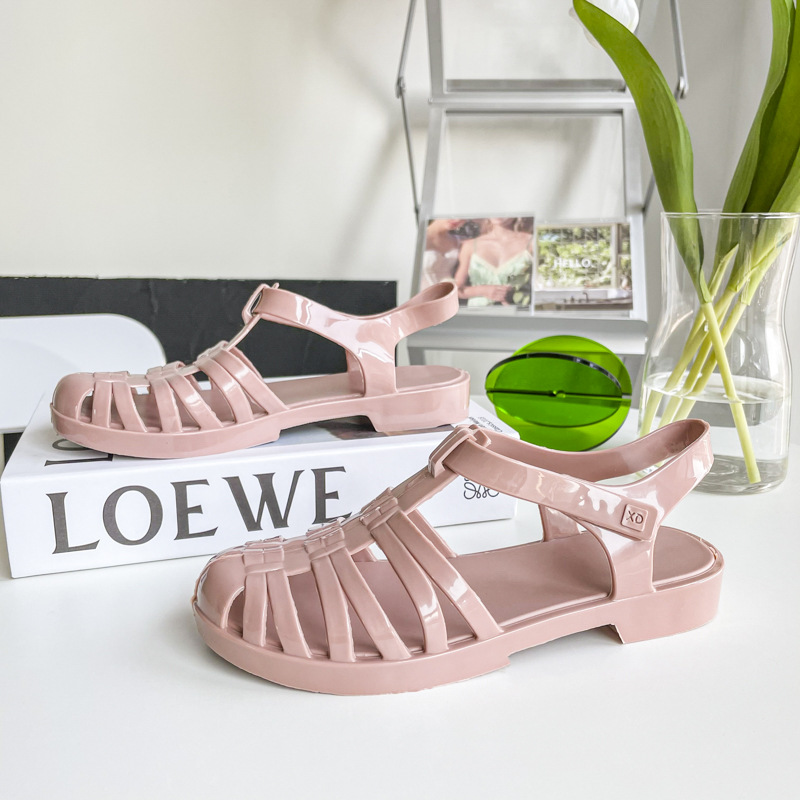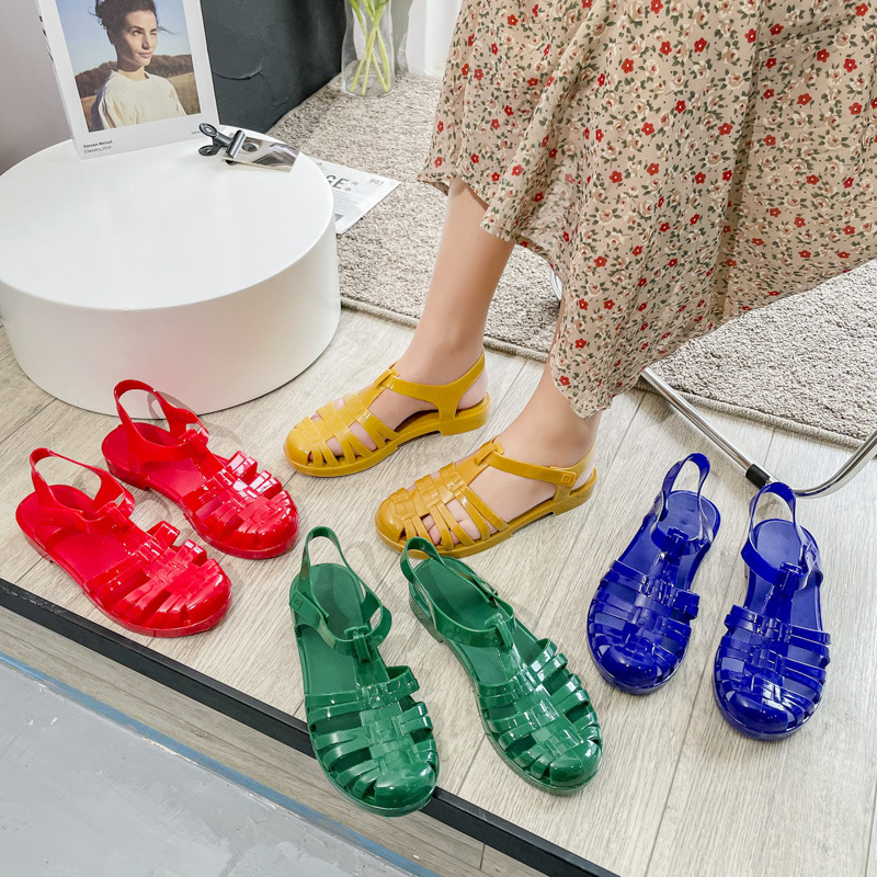 Women's Fashion Retro Flat Heel Transparent Plastic Jelly Shoes