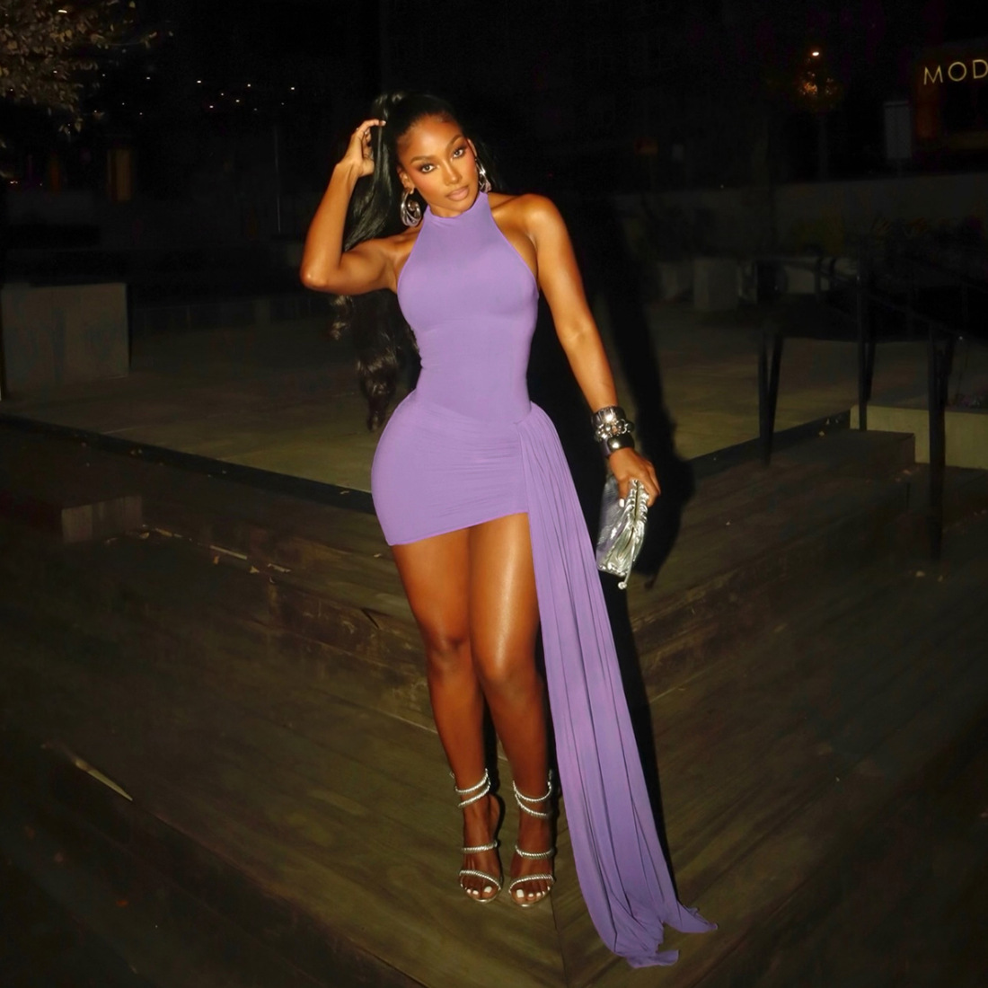 Womens Fashion Ribbed Round-neck Sleeveless Dress