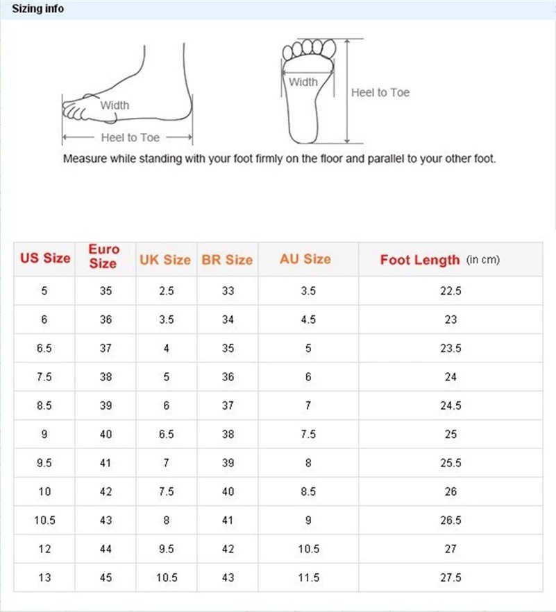 Size: 34, 35, 36, 37, 38, 39, 40, 41, 42, 43, 44, 45, 46