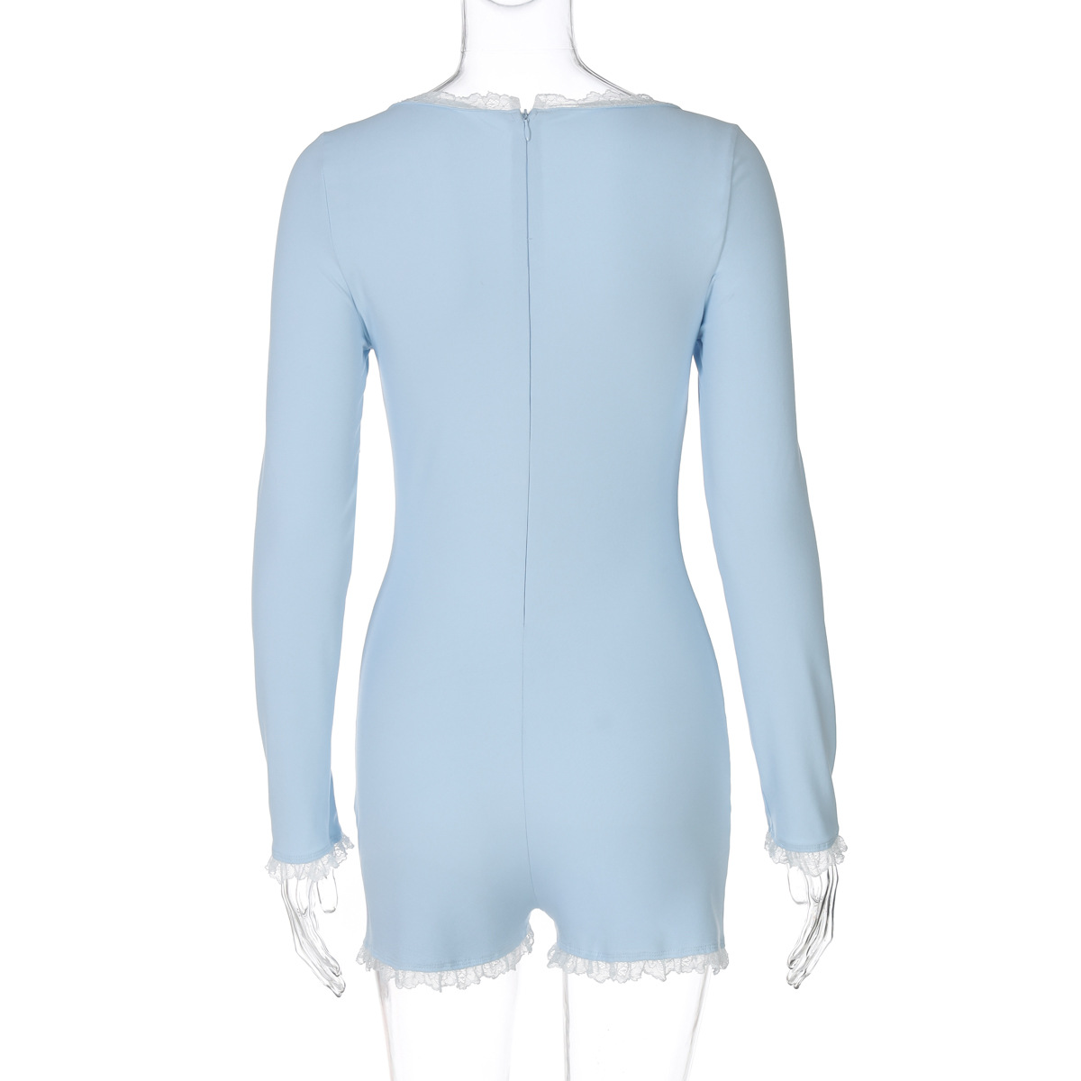 Women's Fashion Sexy Patchwork Back Zipper Slim Fit Long Sleeve Jumpsuit