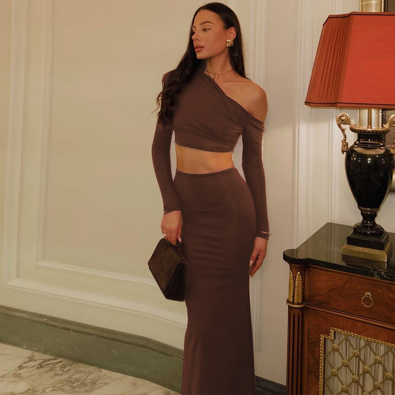 Women's Fashion Shoulder-baring Long-sleeved Top Slim Skirt Suit
