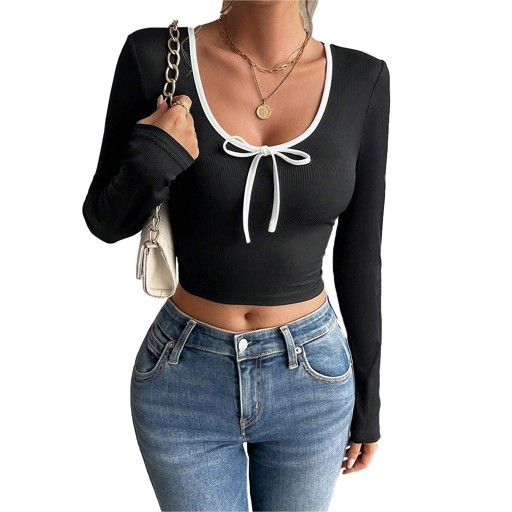 Women's Fashion Simple Style Versatile T-shirt AutumnWinter EuropeanAmerican Slim Fit Short Sexy Color Block Top