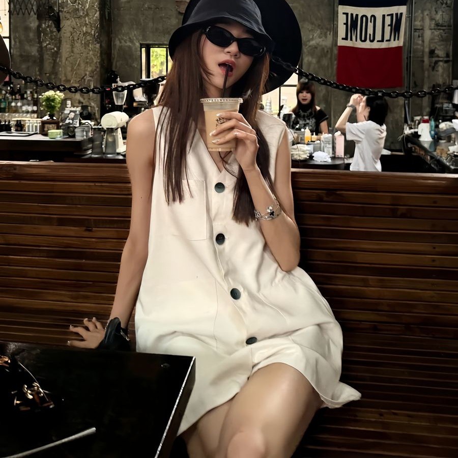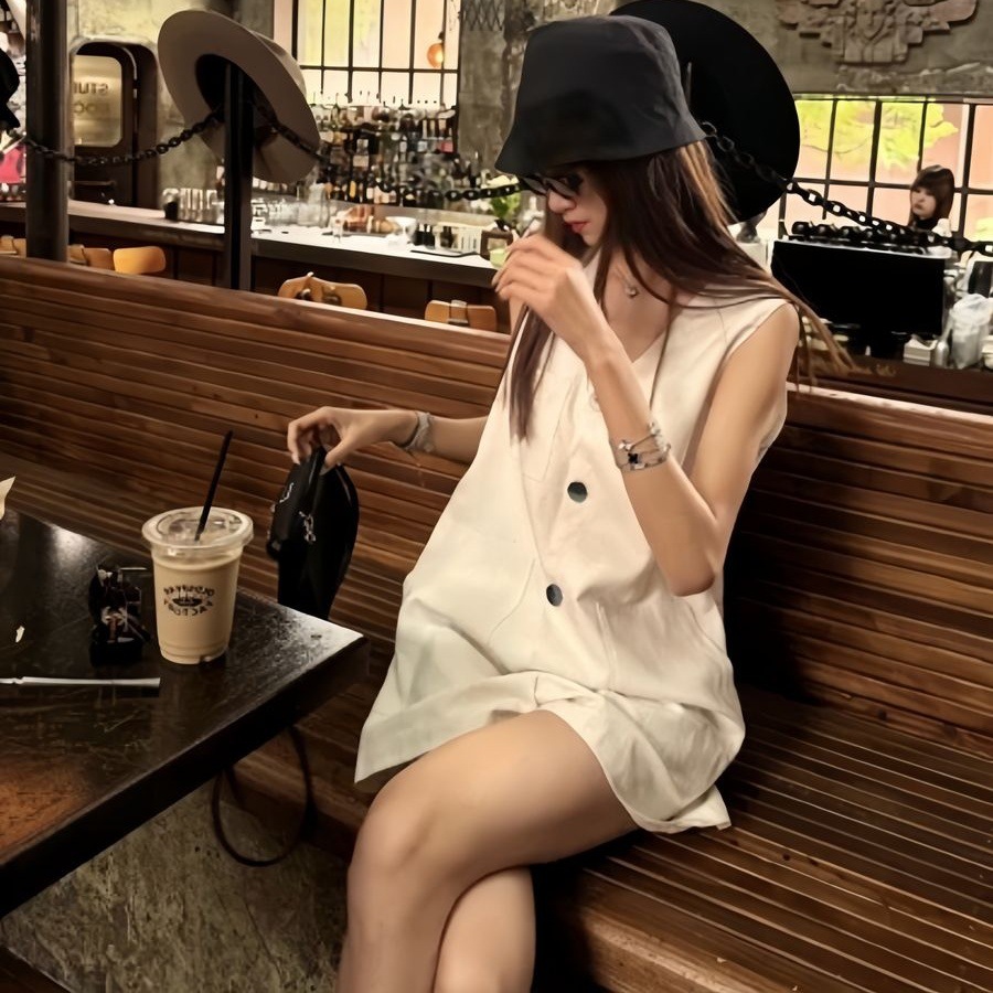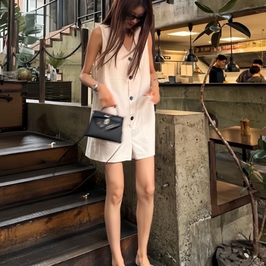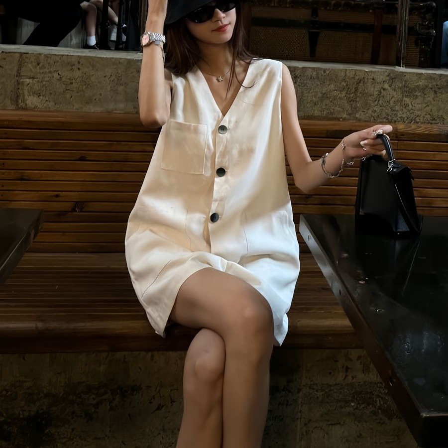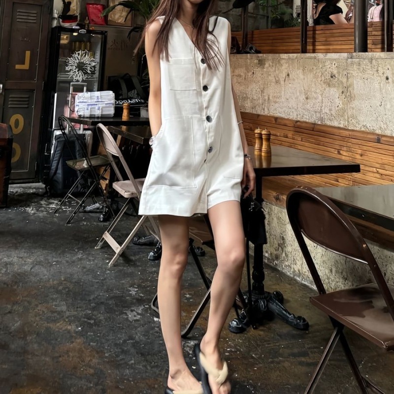 Womens Fashion Single-Breasted Sleeveless Jumpsuit Vest
