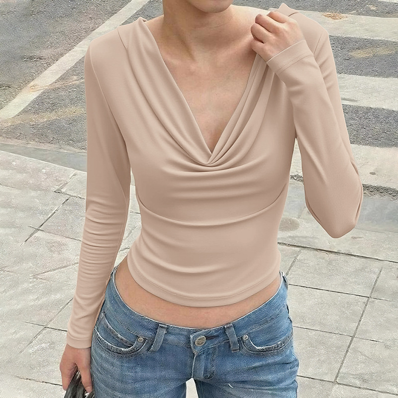 Women's Fashion Slim-fit Deep V Niche Temperament Pure Desire Long-sleeved Top
