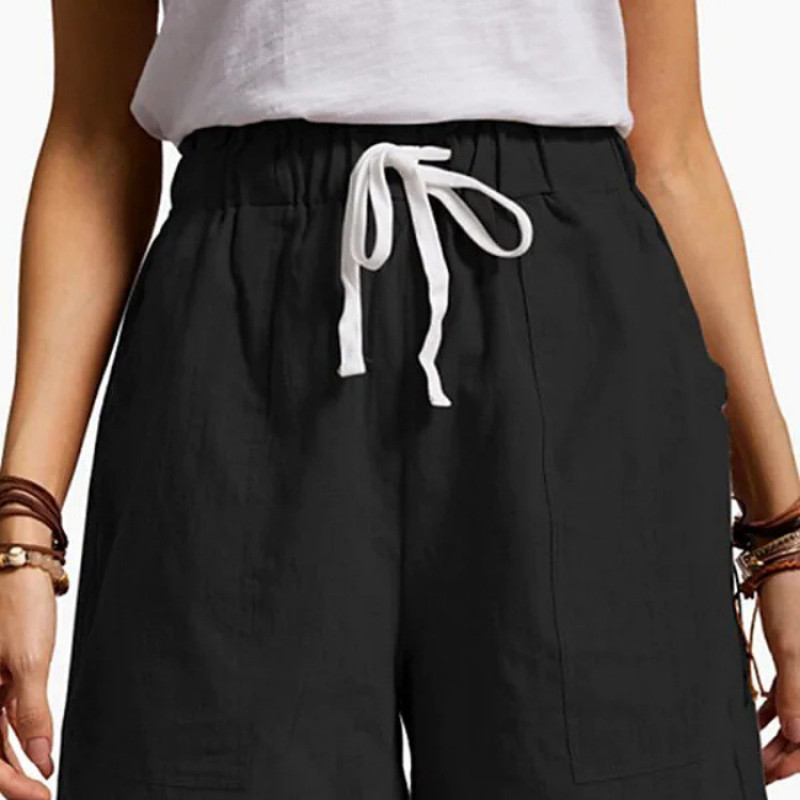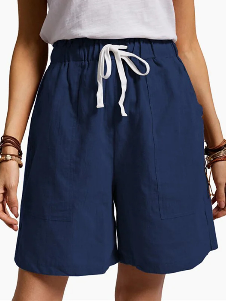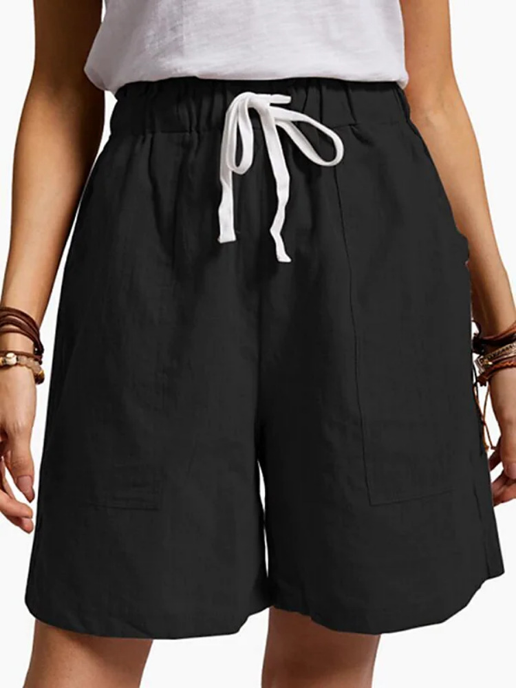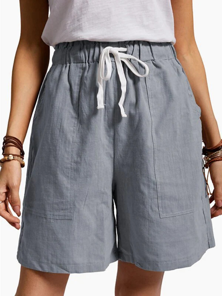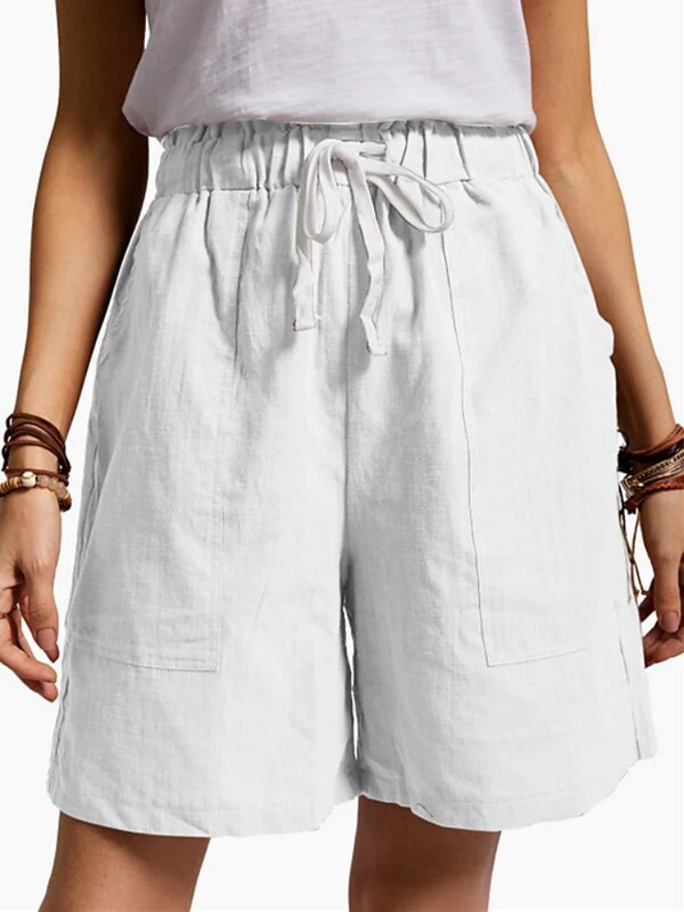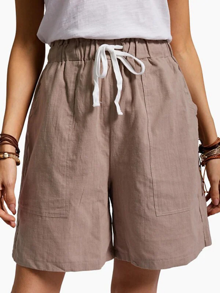 Women's Fashion Solid Color Cotton Linen Elastic Waist Lacing Shorts