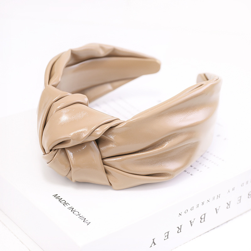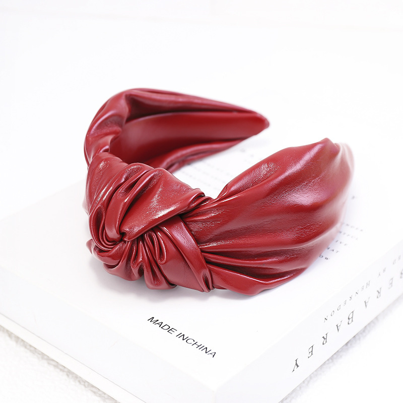 Color: Red Mirror PU Leather Middle Knot Headband, Dark Gray Mirror PU Leather Middle Knot Headband, Pink Mirror PU Leather Middle Knot Headband, Royal Blue Mirror PU Leather Middle Knot Headband, Khaki Mirror PU Leather Middle Knot Headband , Burgundy Mirror PU Leather Middle Knot Headband, Black Mirror PU Leather Middle Knot Headband