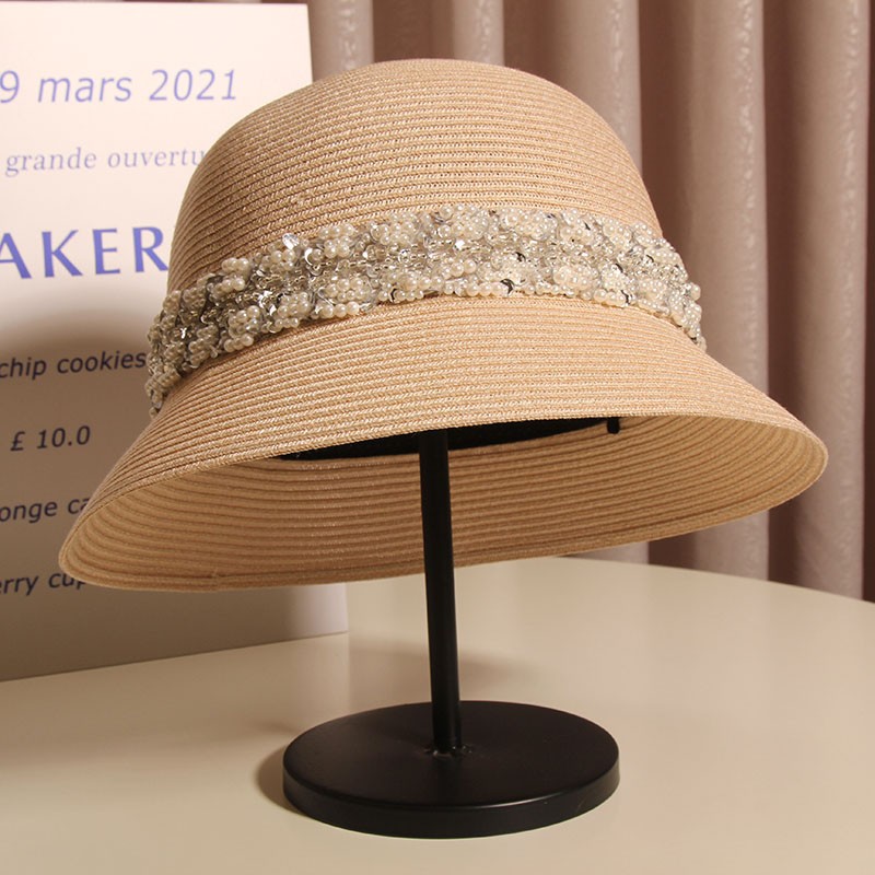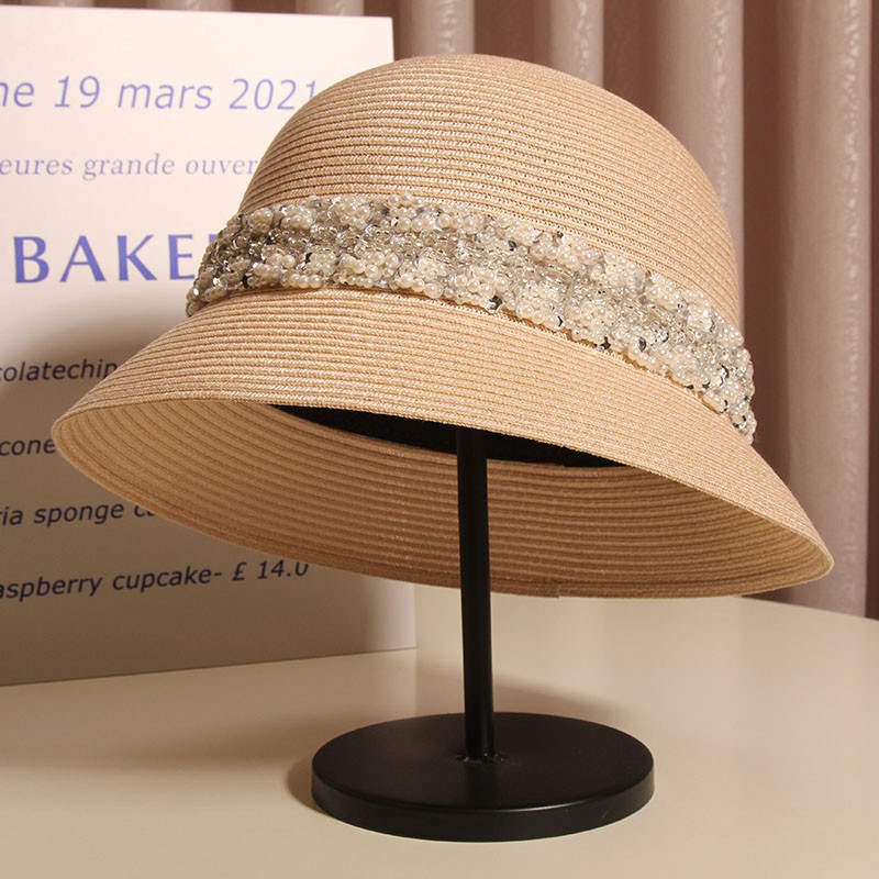 Color: heavy handmade pearl sequins pp bucket hat -- black, heavy handmade pearl sequins pp bucket hat -- apricot