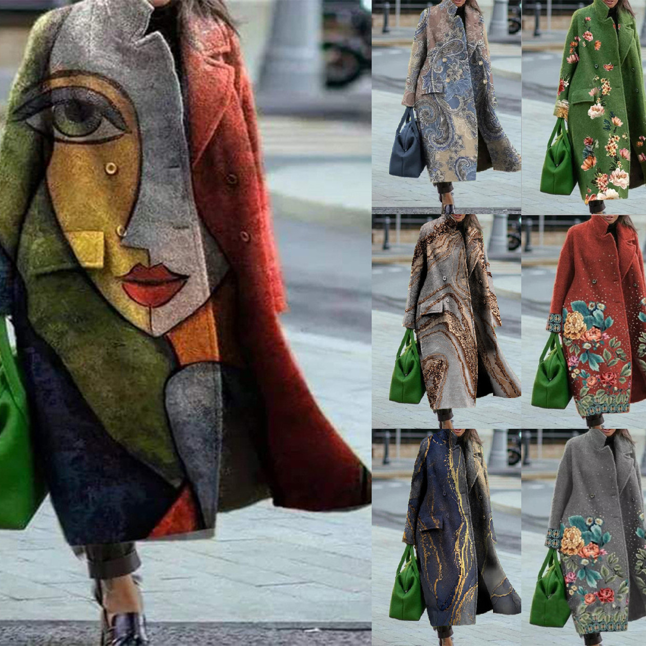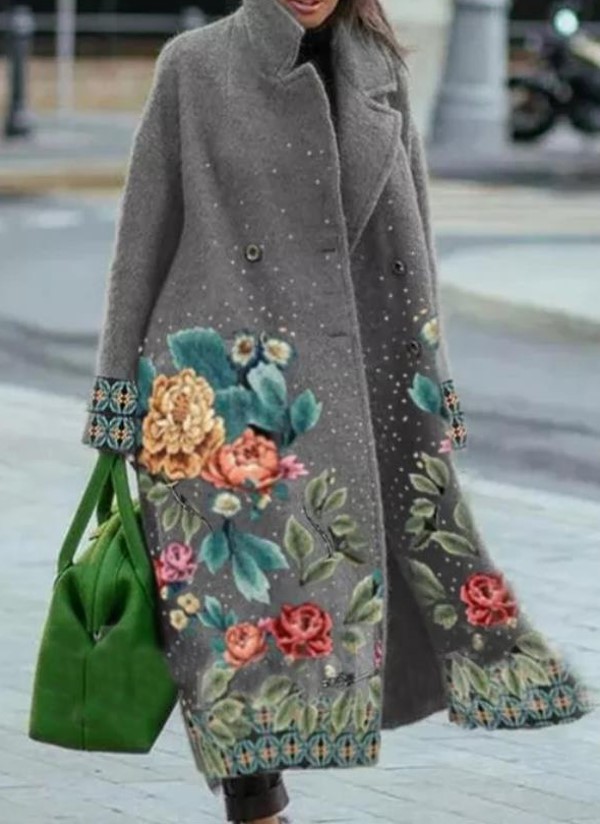 Women's Fashion Temperament Pure Color Lapel Loose Woolen Coat
