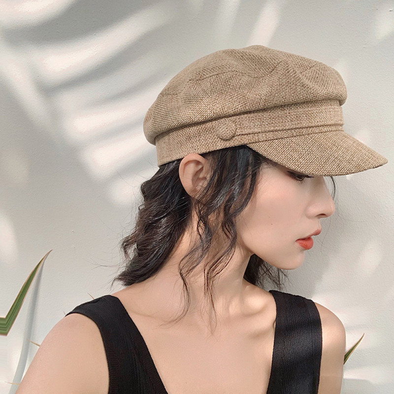 Color: solid color linen navy hat--black, solid color linen navy hat--khaki, solid color linen navy hat--beige, solid color linen navy hat--rust red, solid color linen navy hat--dark blue