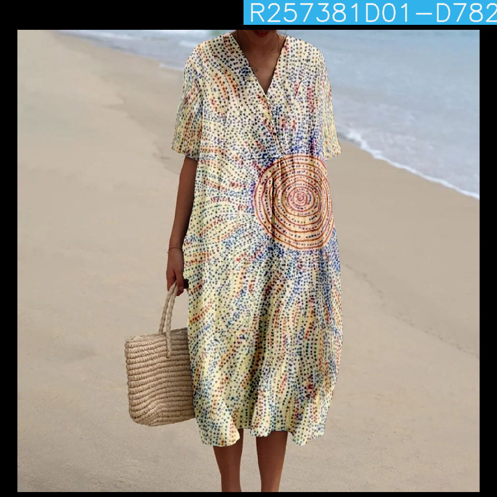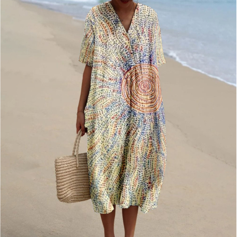 Women's Fashion V-Neck Short-Sleeve Shirt Dress