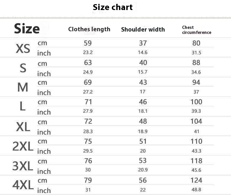 Size: XS,S,M,L,XL,2XL,3XL,4XL