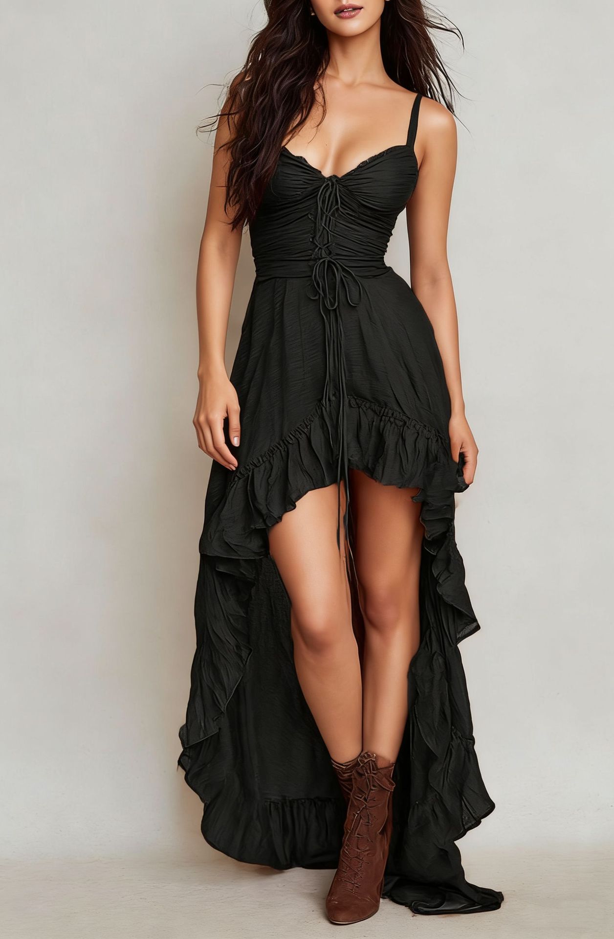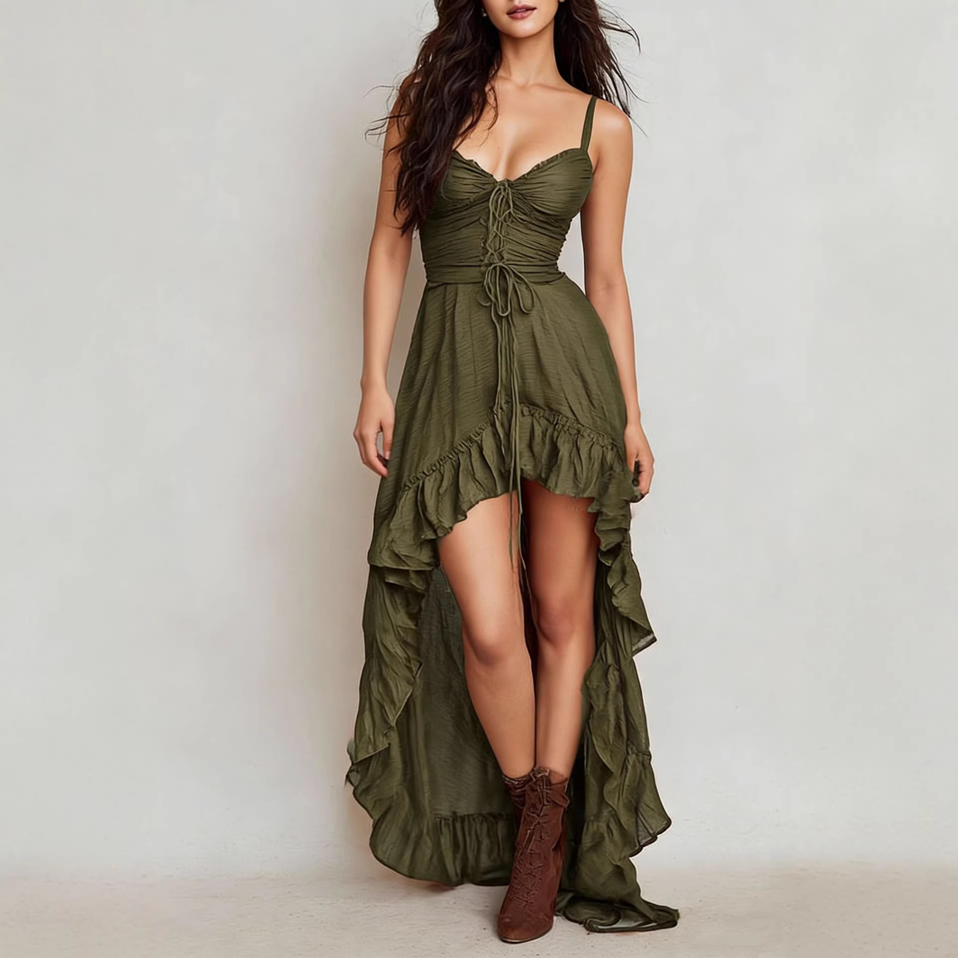 Women's Fashion Vintage Irregular Dress With Ruffled Hem