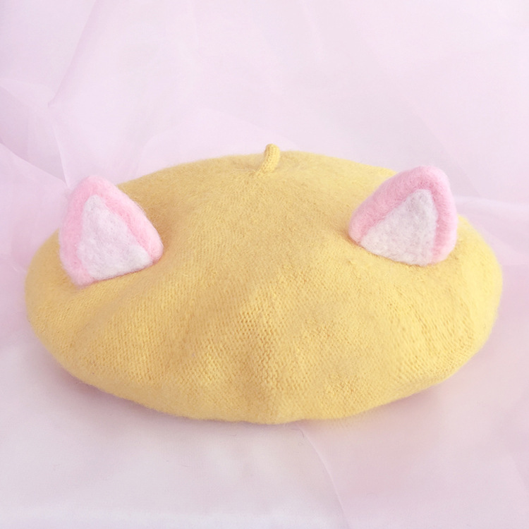 Colour:purple rabbit ear beret,purple cat ear beret,grey rabbit ear beret,grey cat ear beret,khaki rabbit ear beret,khaki cat ear beret,pink rabbit ear beret,pink cat ear beret,beige rabbit ear beret,beige cat ear beret,yellow rabbit ear beret,yellow cat ear beret,navy rabbit ear beret,navy cat ear beret,burgundy rabbit ear beret, burgundy cat ear beret, orange rabbit ear beret, orange cat ear beret