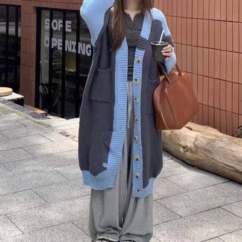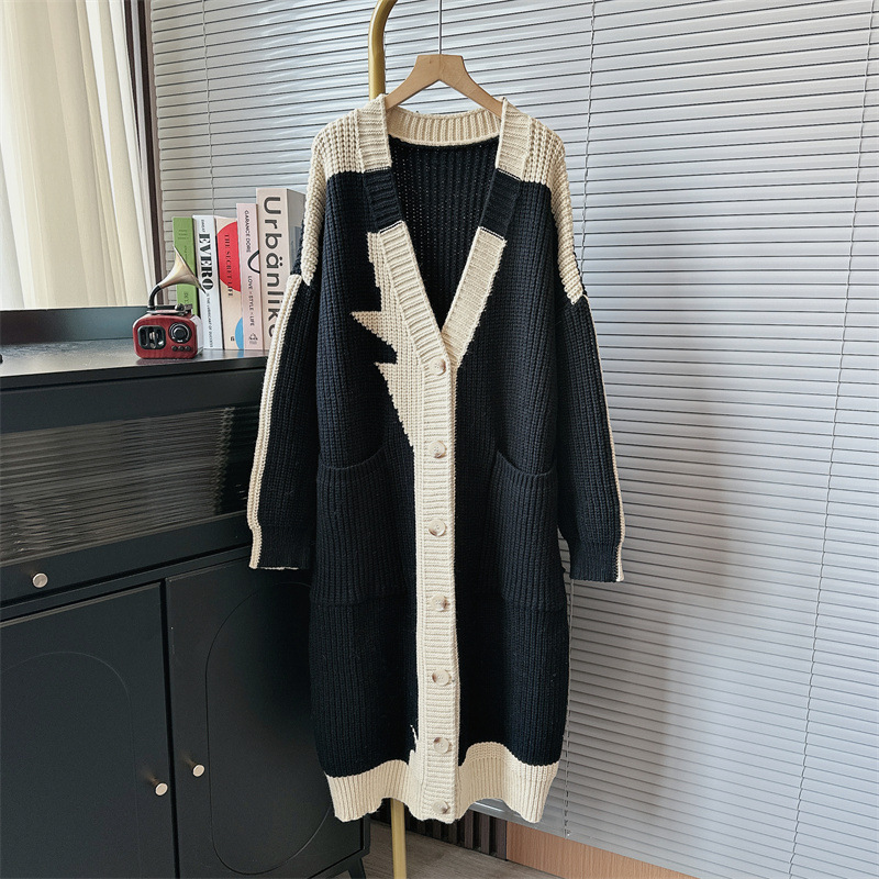 Women's Fashionable All-match Contrast Color Knitted Coat
