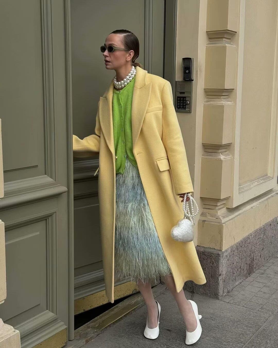 Women's Fashionable All-match Goose Yellow Long Coat Coat
