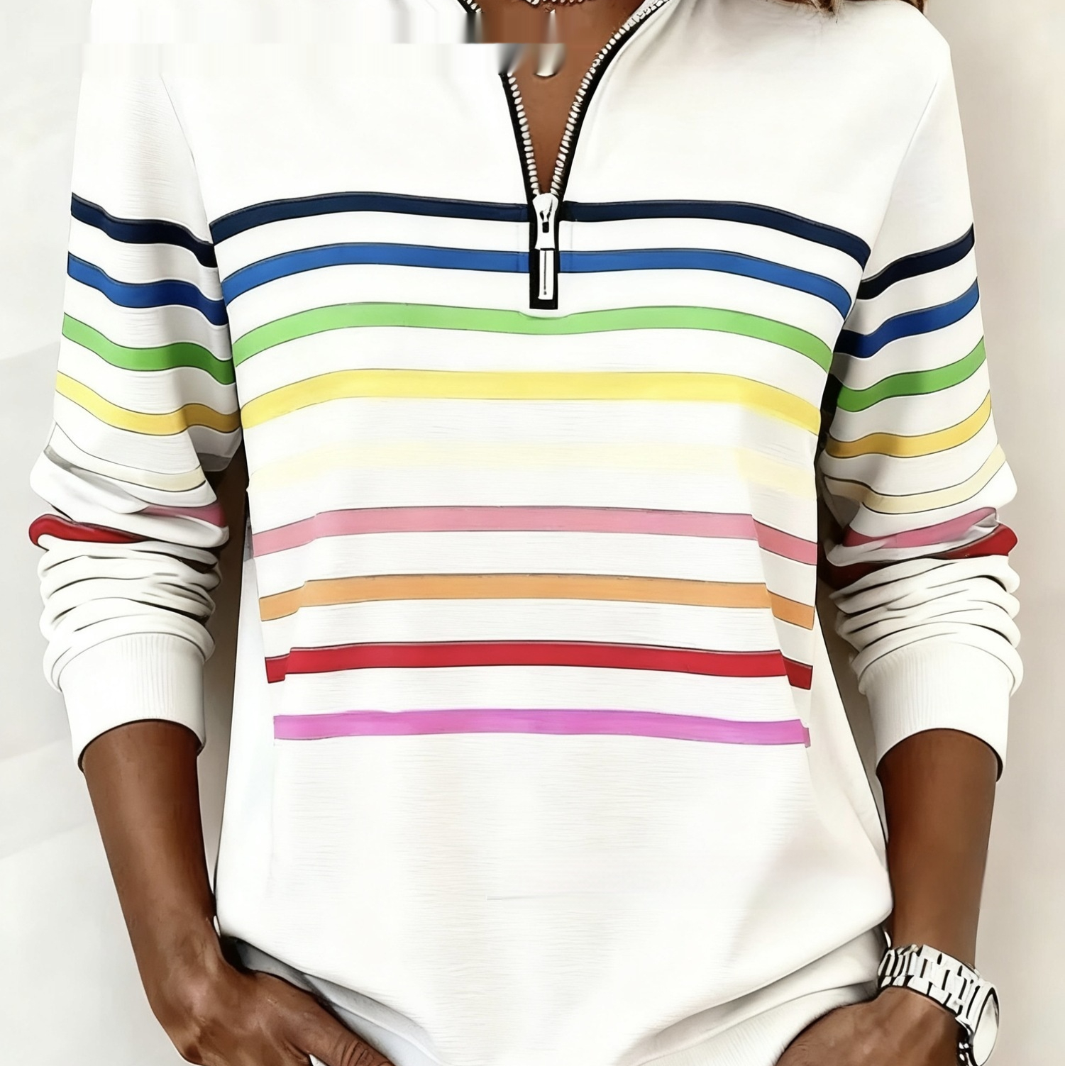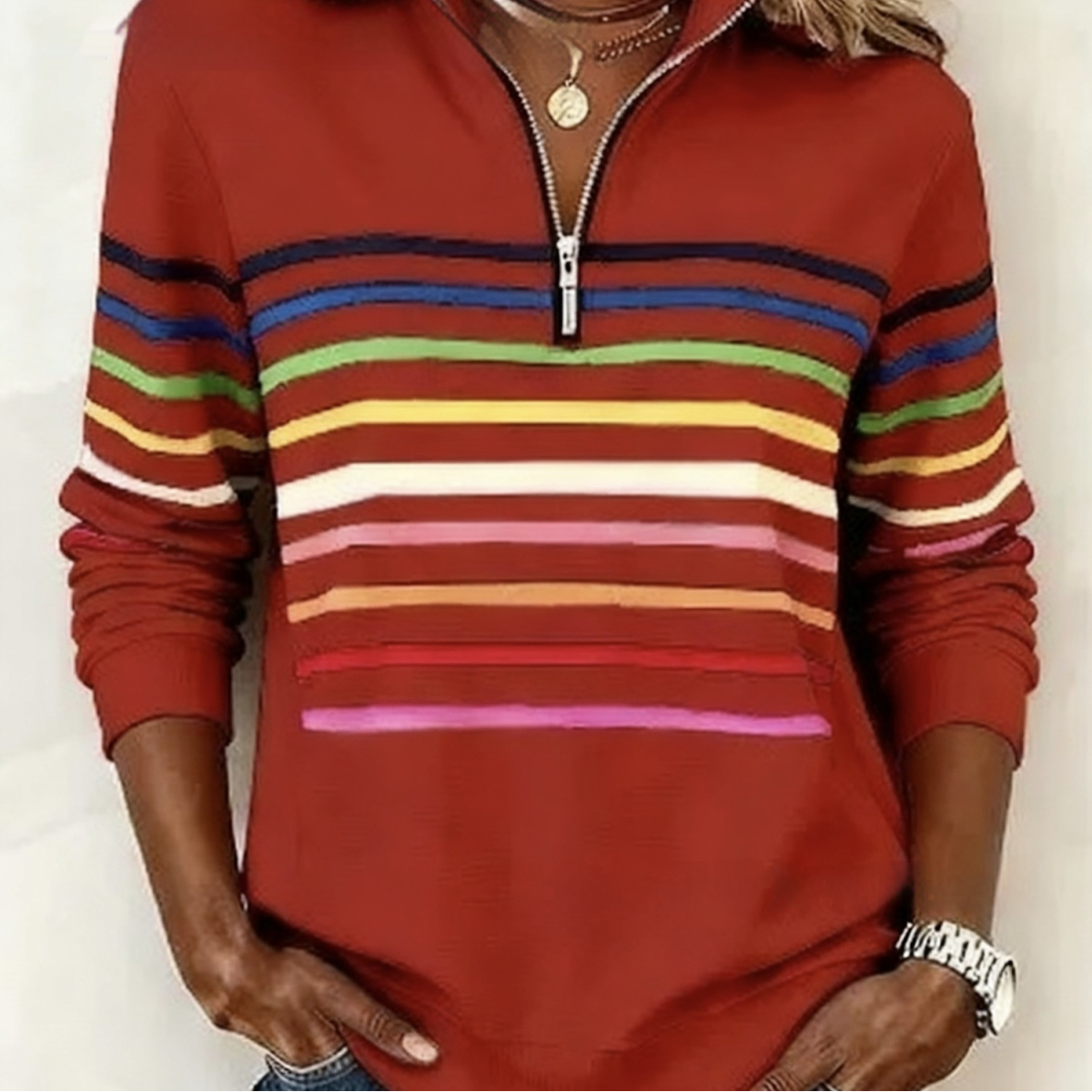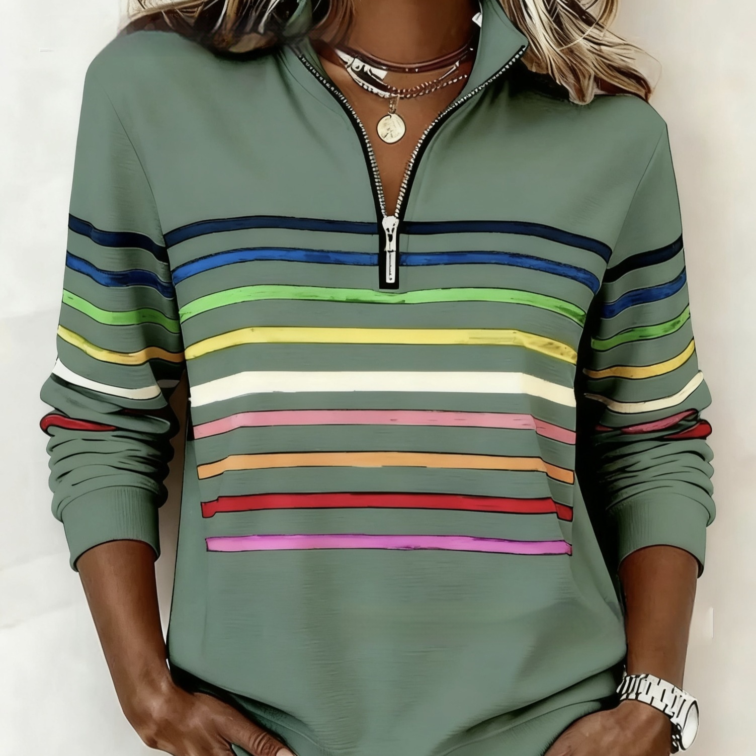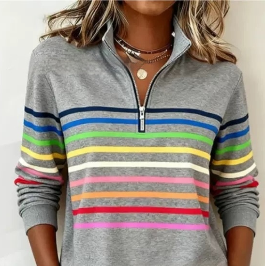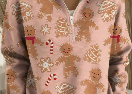 Womens Fashionable Casual Christmas Stand-Up Collar Zip-Up Sweatshirt With A Print Pattern