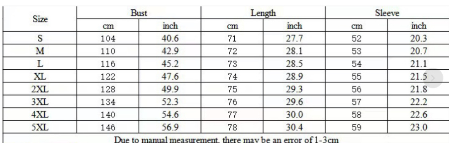 Sizes: S, M, L, XL, 2XL, 3XL, 4XL, 5XL