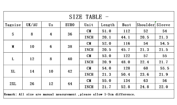 1. Asian sizes are 1 to 2 sizes smaller than European and American people. Choose the larger size if your size between two sizes. Please allow 2-3cm differences due to manual measurement. 2. Please check the size chart carefully before you buy the item, if you don't know how to choose size, please contact our customer service. 3.As you know, the different computers display colors differently, the color of the actual item may vary slightly from the following images.