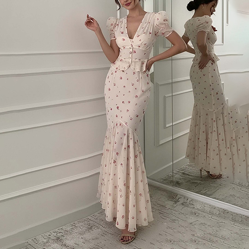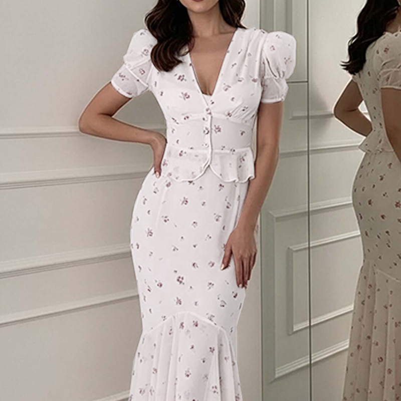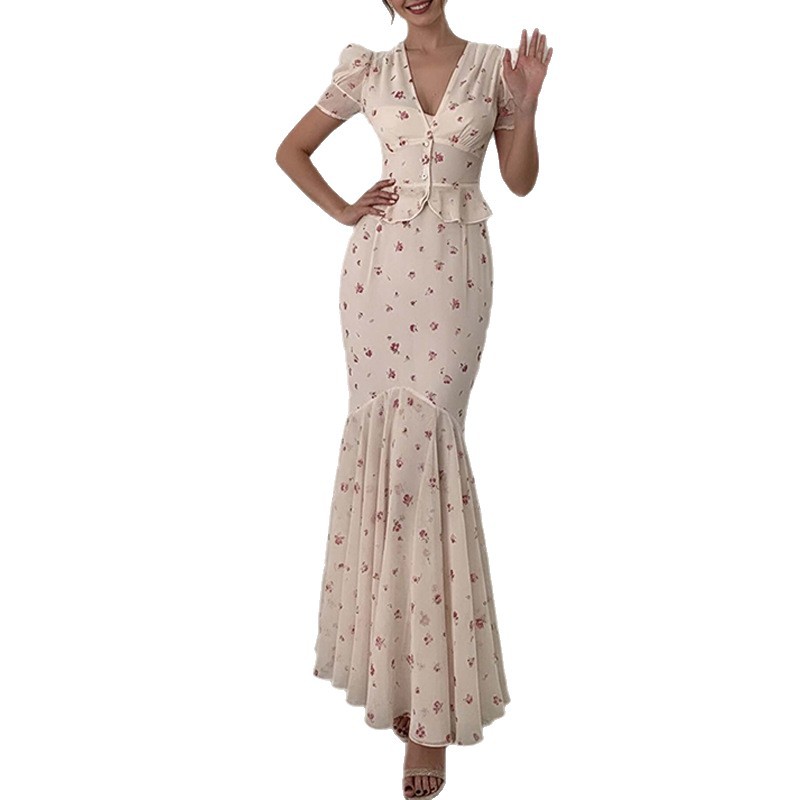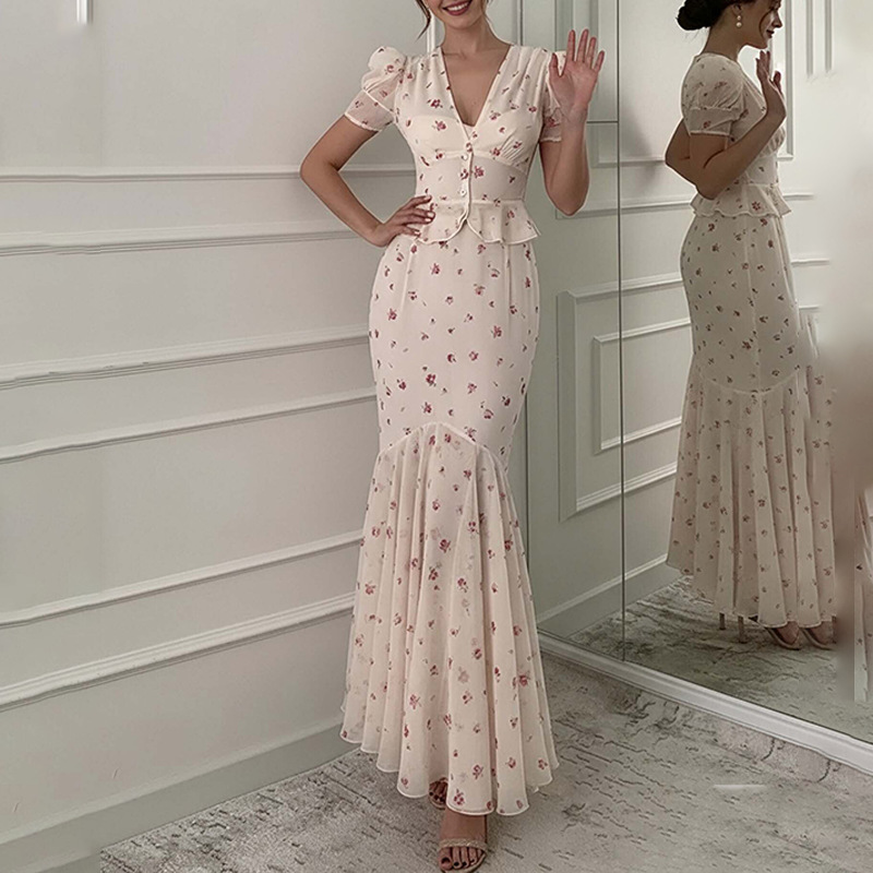Women's Fashionable Casual Printed Short-Sleeve Long Dress Set