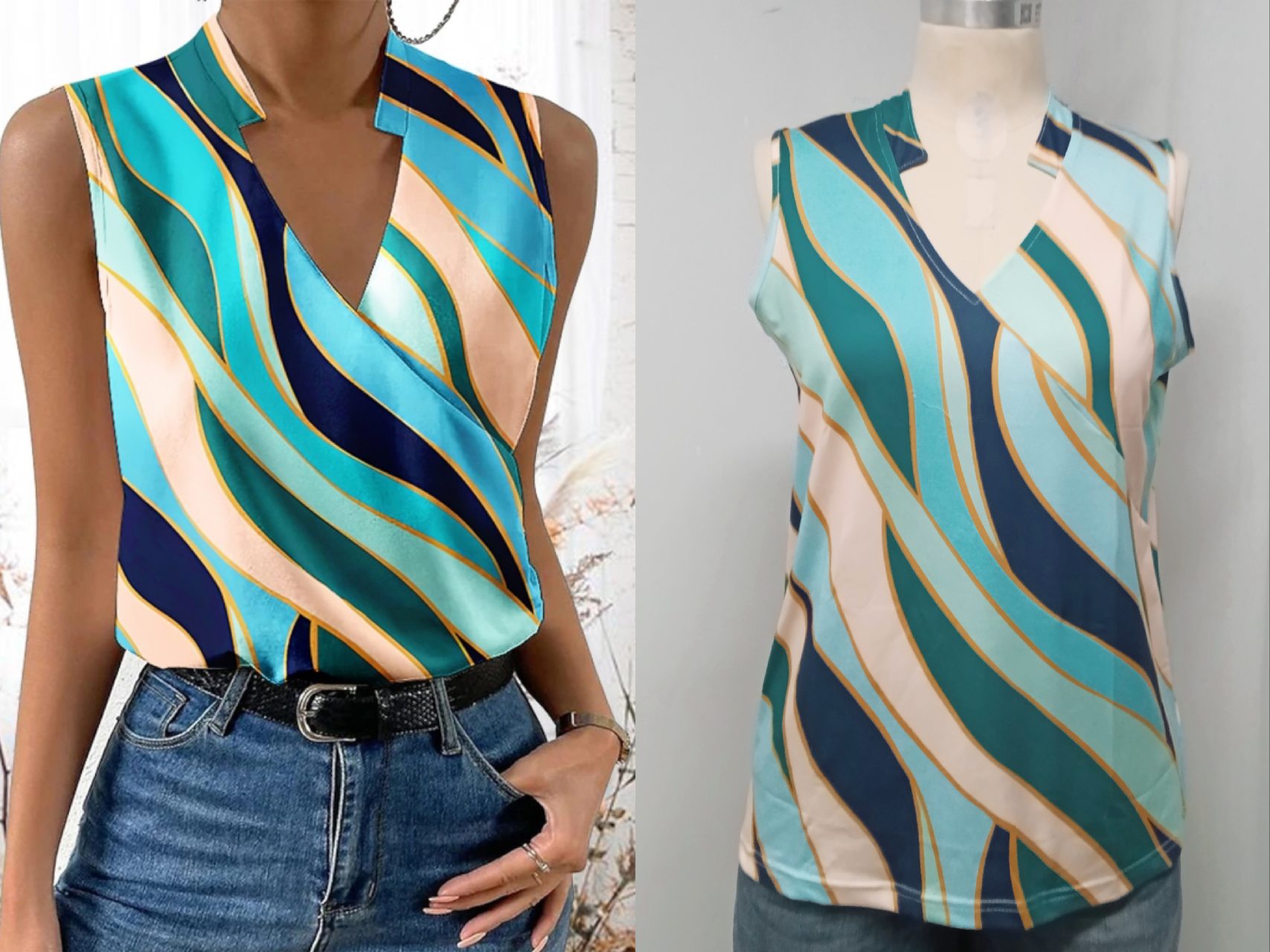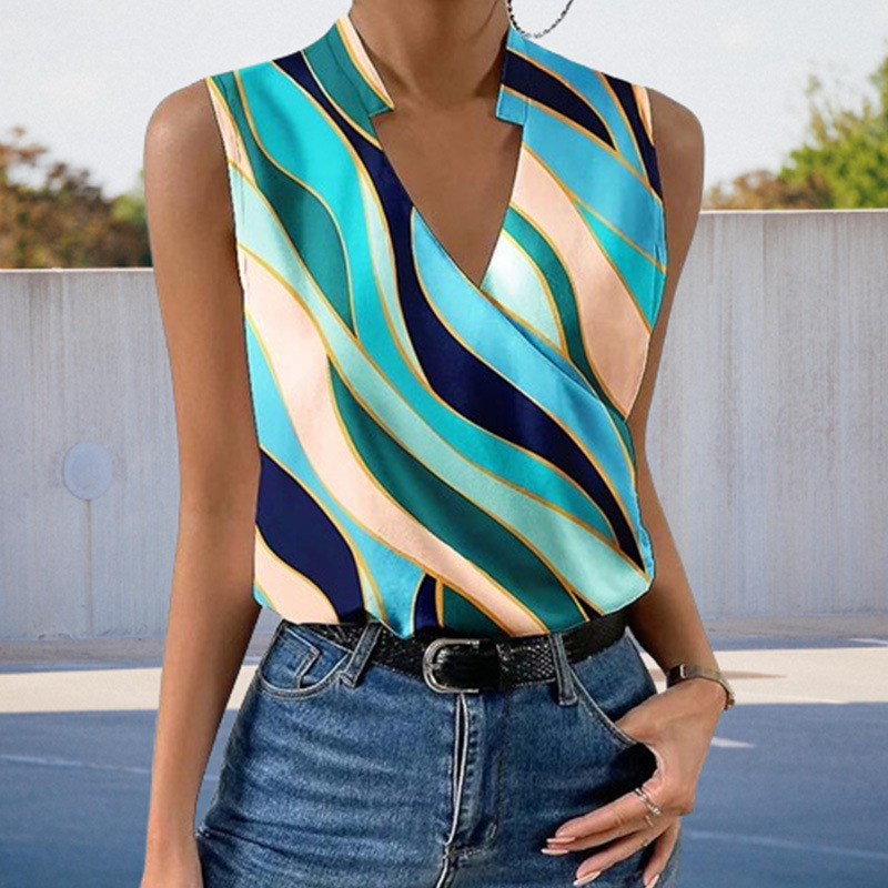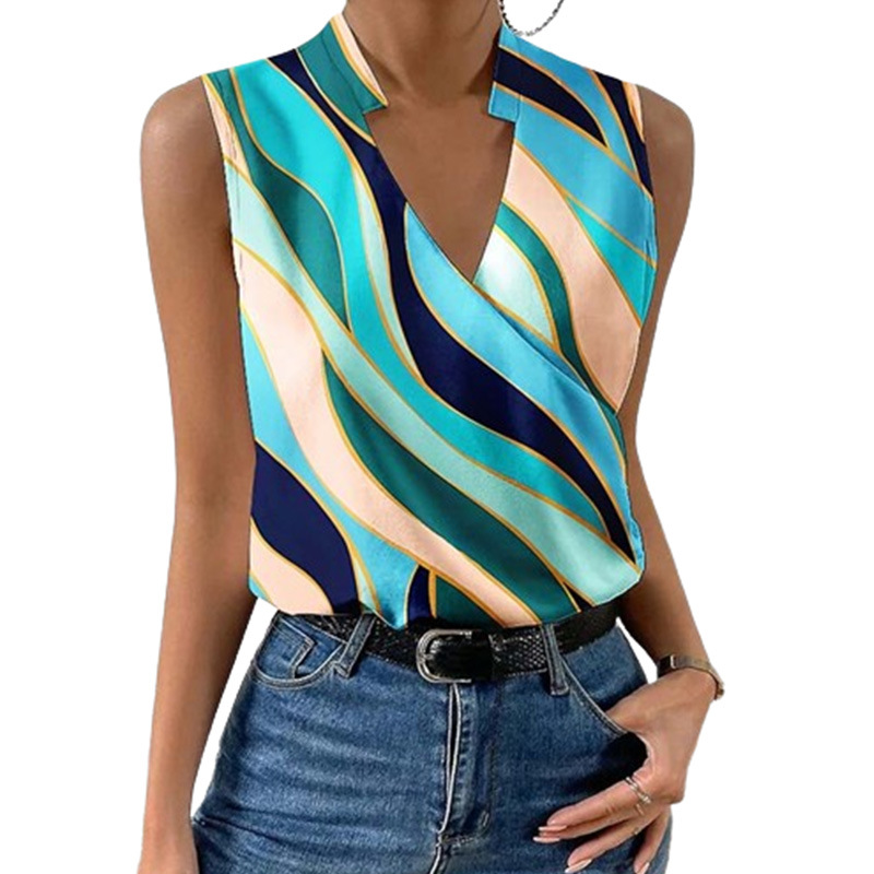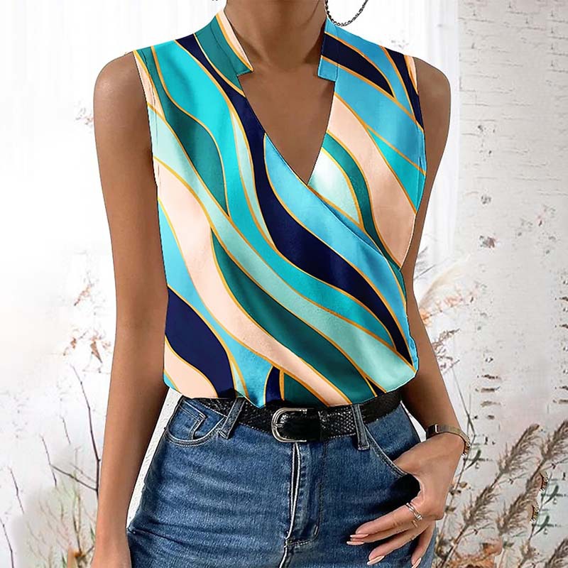 Women's Fashionable Color Abstract Graphic V-neck Vest