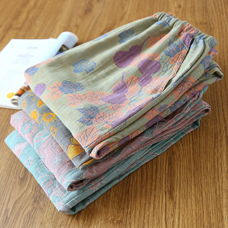 Women's Fashionable Cotton Double-layer Yarn-dyed Close-up Pajama Pants