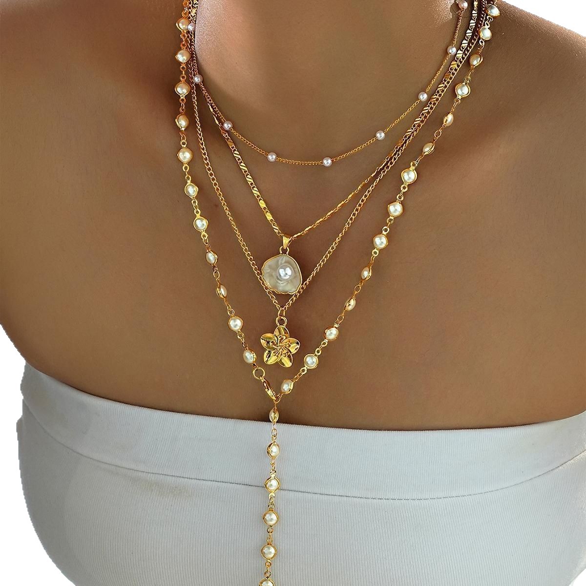 Color: Pearl, Flower, and Shell Necklace