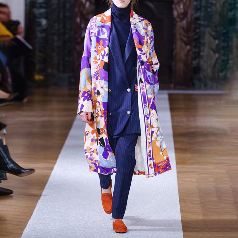 Women's Fashionable Retro Print Long Trench Coat