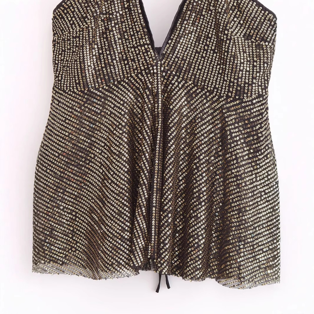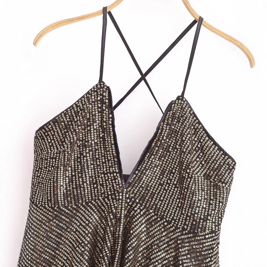Womens Fashionable Sexy Sequin Cross-Back Camisole