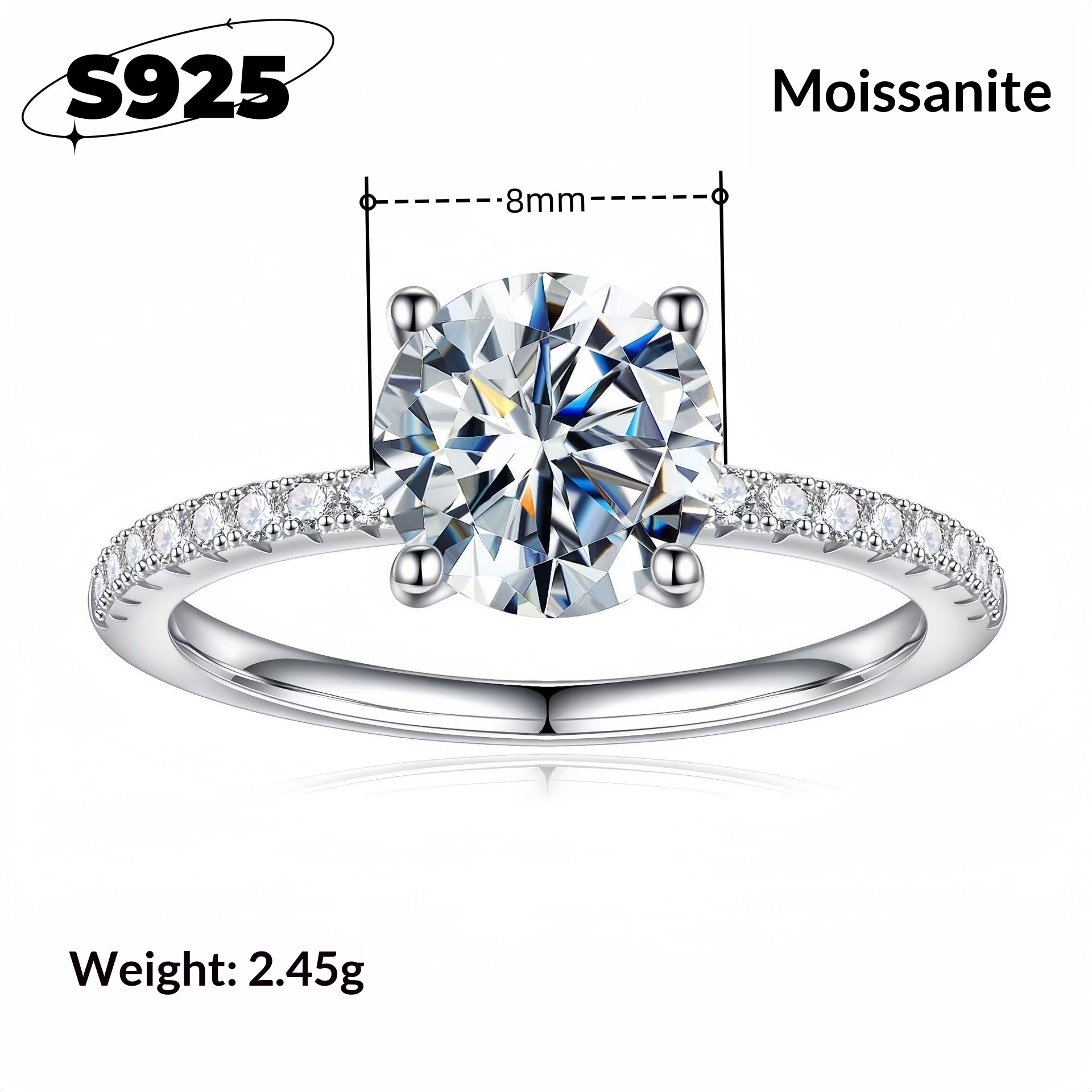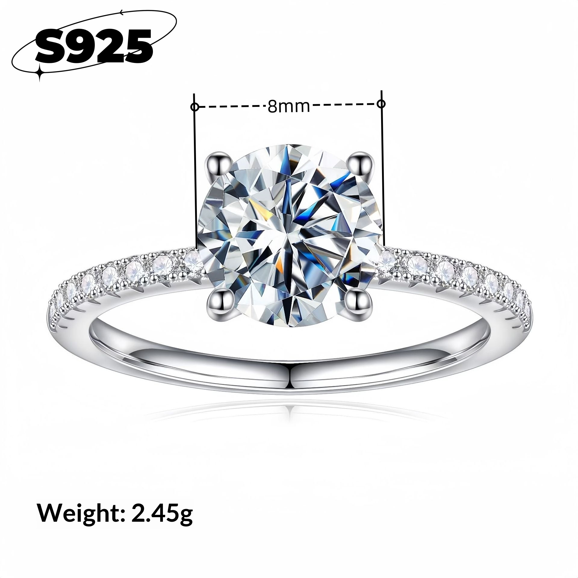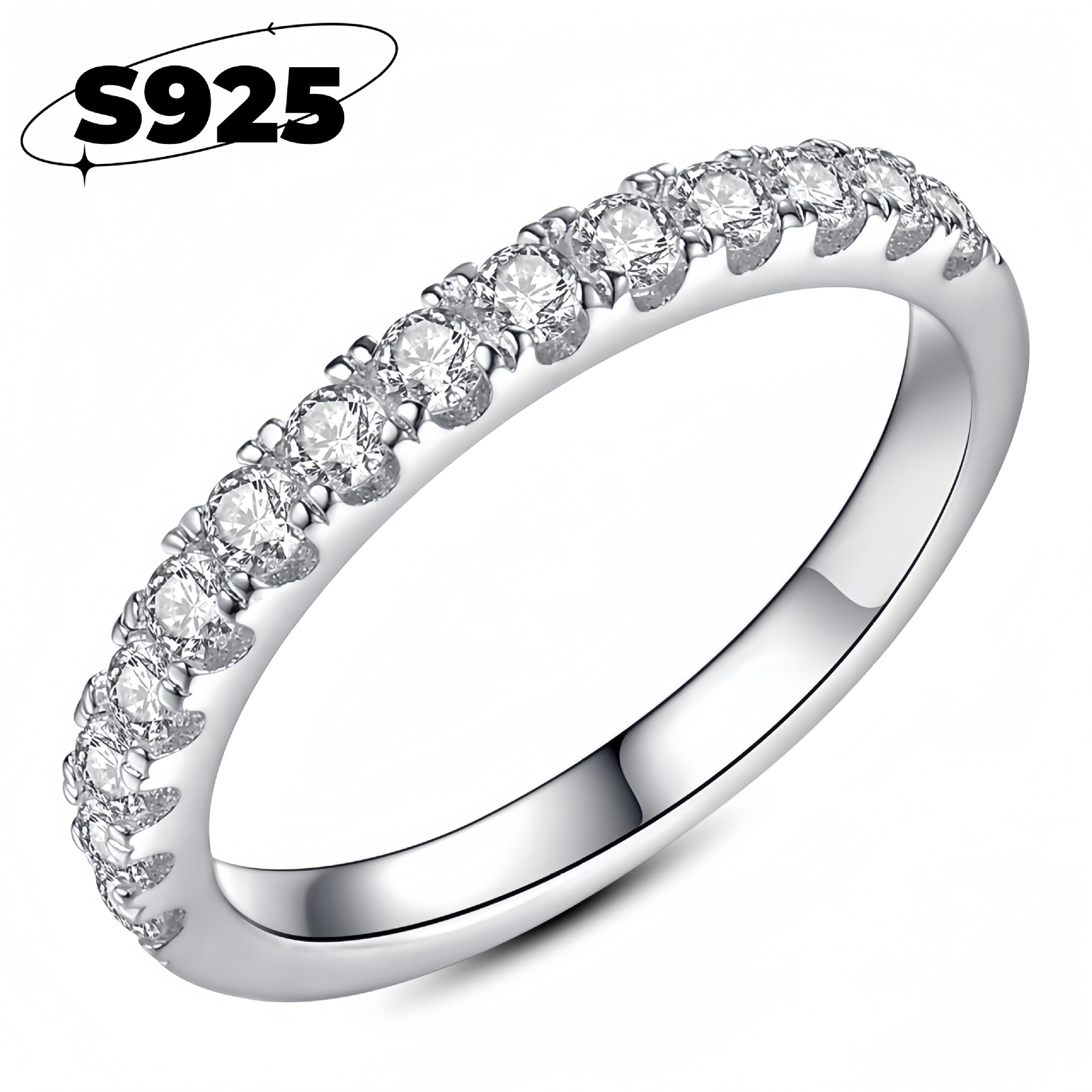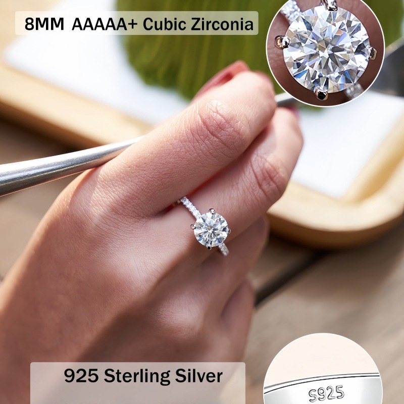 Style 1: Four-prong Half-Row Diamond Ring [8mm Zircon]