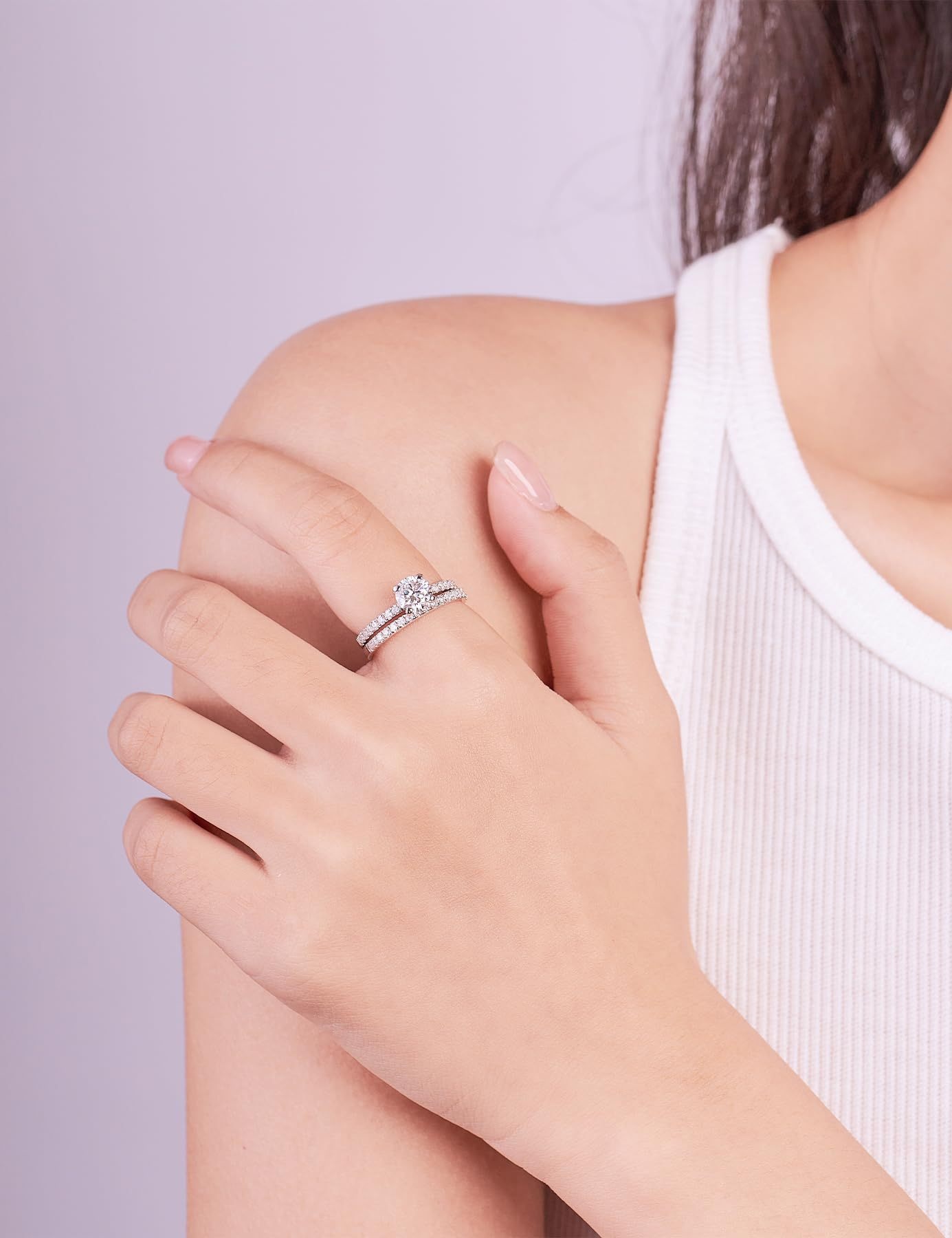 Style 5: Four-prong Half-Row Diamond Ring + Starry Sky Half-Row Diamond Ring