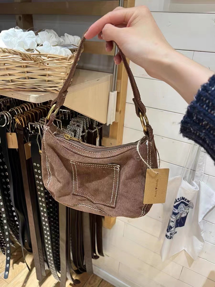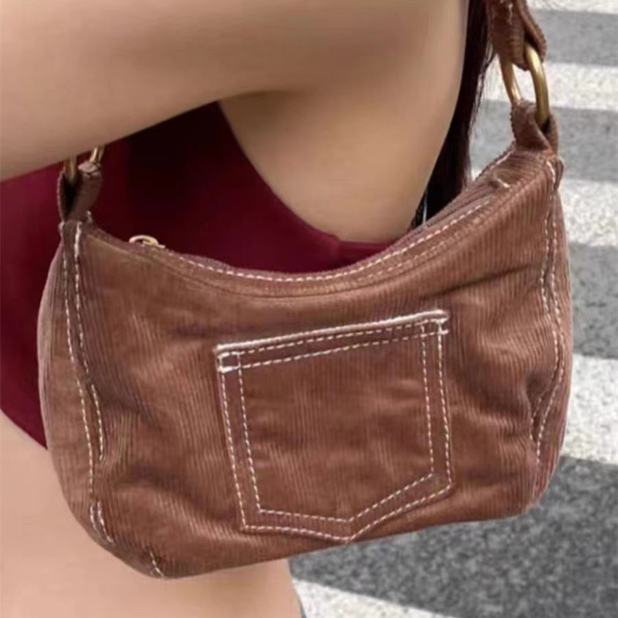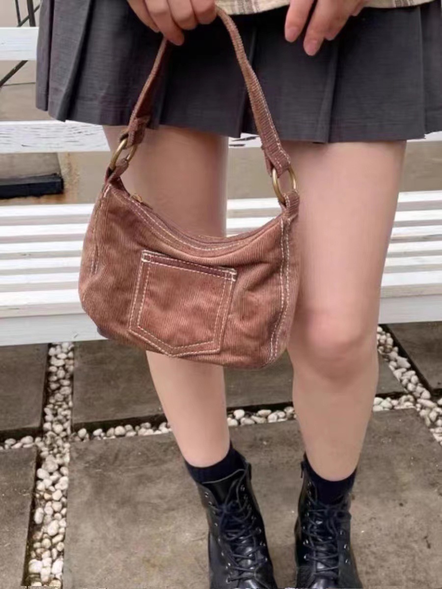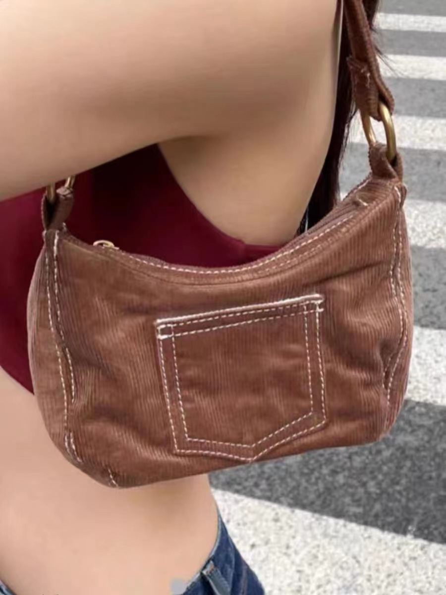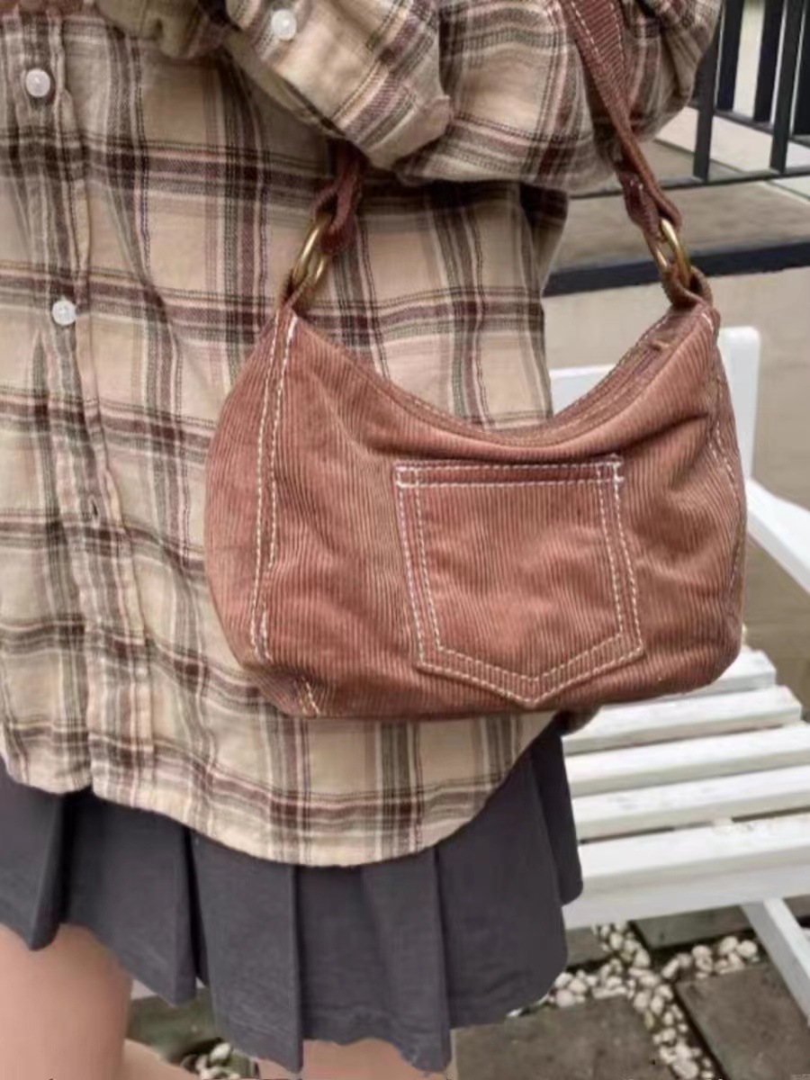 Women's Fashionable Simple Corduroy Shoulder Handbag